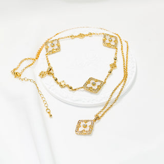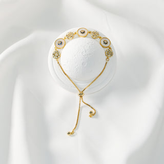 Gold Plated Mother of Pearl & Zircon Star Bracelet – Adjustable Slide Chain