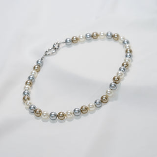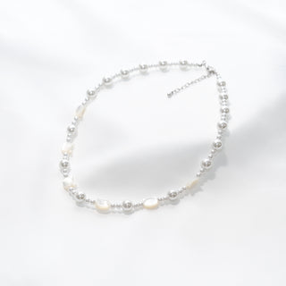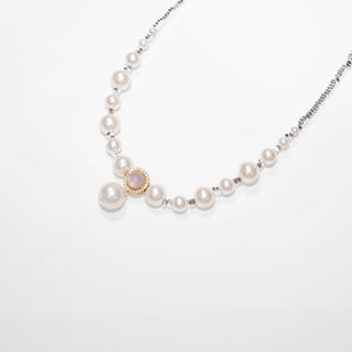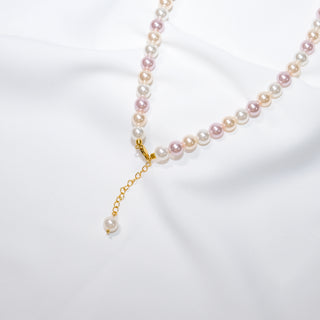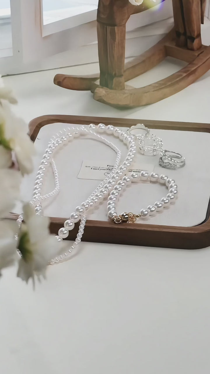 Layered Shell Pearl Necklace, Double Strand Pearl Chain (2mm 8mm 10mm)