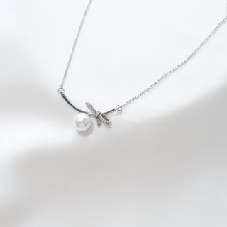 Sterling Silver Pearl Necklace with Detachable Cushion-Cut CZ Pendant