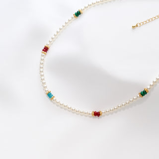 Colorful Beaded Pearl Choker Necklace with Gold Accents – Baby Pearl, 39+7cm