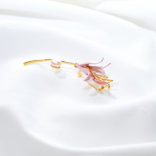 14K Gold Plated Lily Brooch with Freshwater Pearl – Elegant Floral Pin