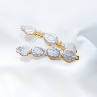 Freshwater Baroque Pearl Hair Barrette, Iridescent Gold Clip (4 Pearls, Optional Spacer)