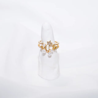 Pearl & Mother of Pearl Bracelet with Gold Plated Star Charms & Cubic Zirconia