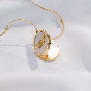 Gold Butterfly Locket Necklace | Mother of Pearl Pendant with Photo Insert