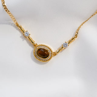 Golden Tiger Eye Pendant Necklace with Cubic Zirconia & Adjustable Chain