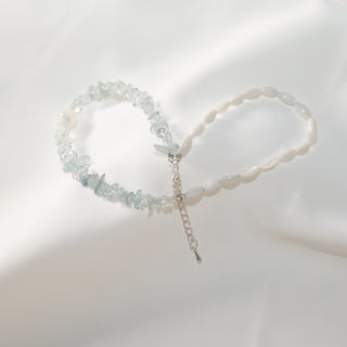 Double Layer Sea Blue Stone Beaded Bracelet – Natural Crystal & Pearl Stackable Jewelry