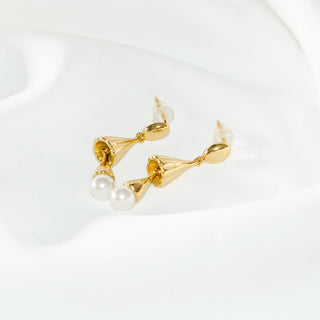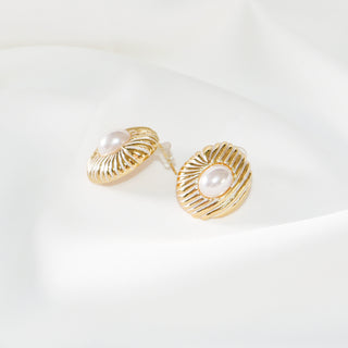 Gold Pearl Stud Earrings, Vintage French Style, Elegant Women's Jewelry