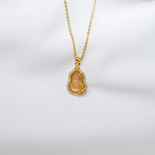 White Opal Gourd Pendant Necklace with Cubic Zirconia – Gold Plated