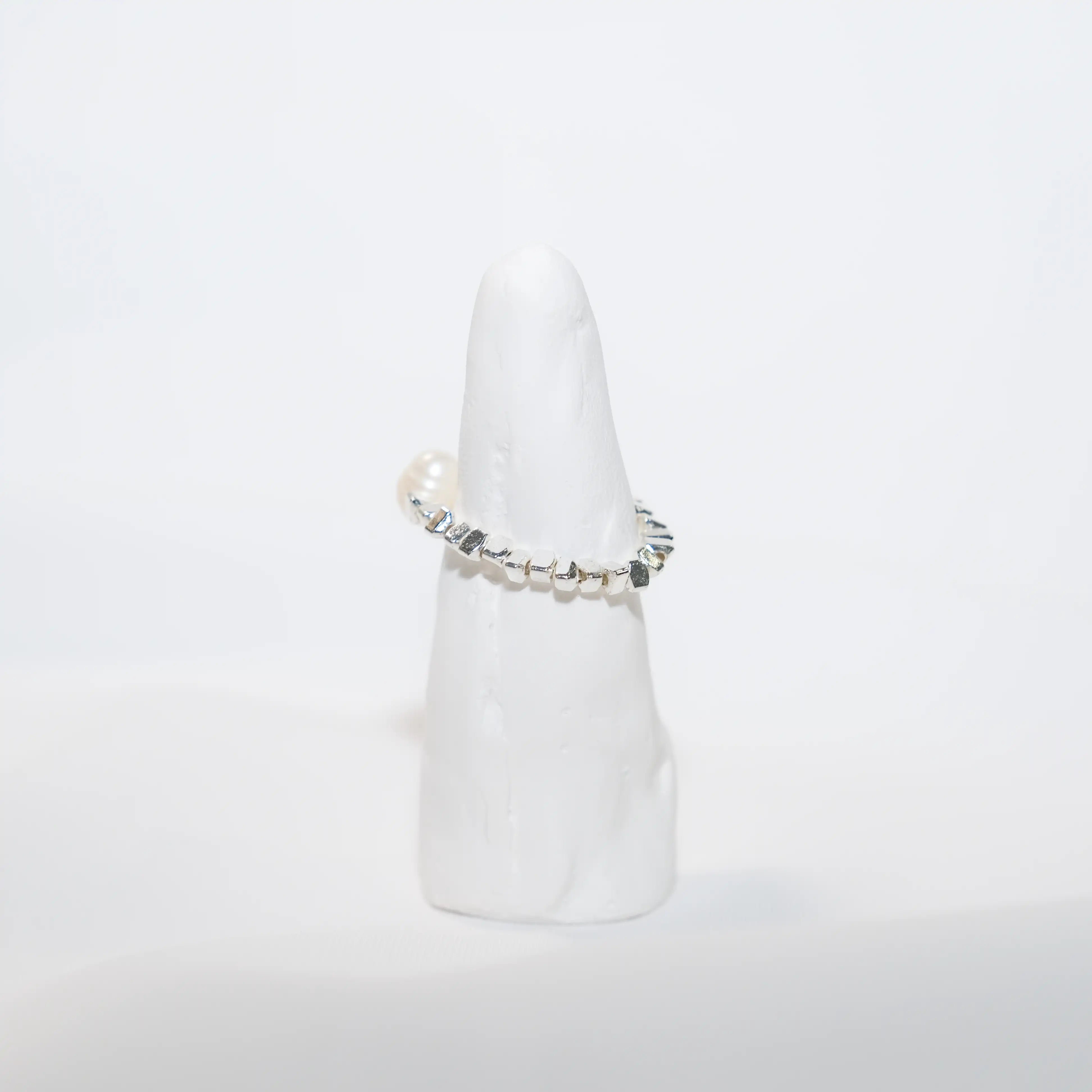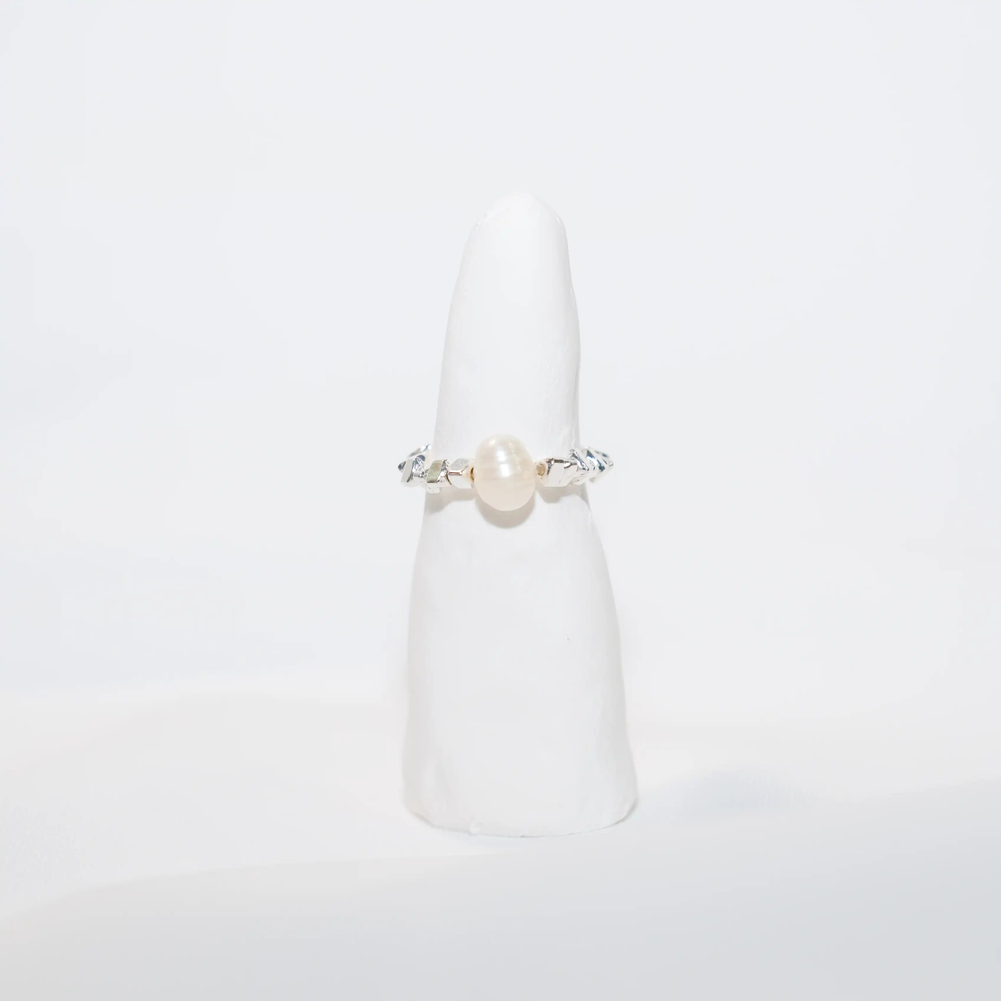 Elegant Freshwater Pearl & Silver Bead Elastic Ring