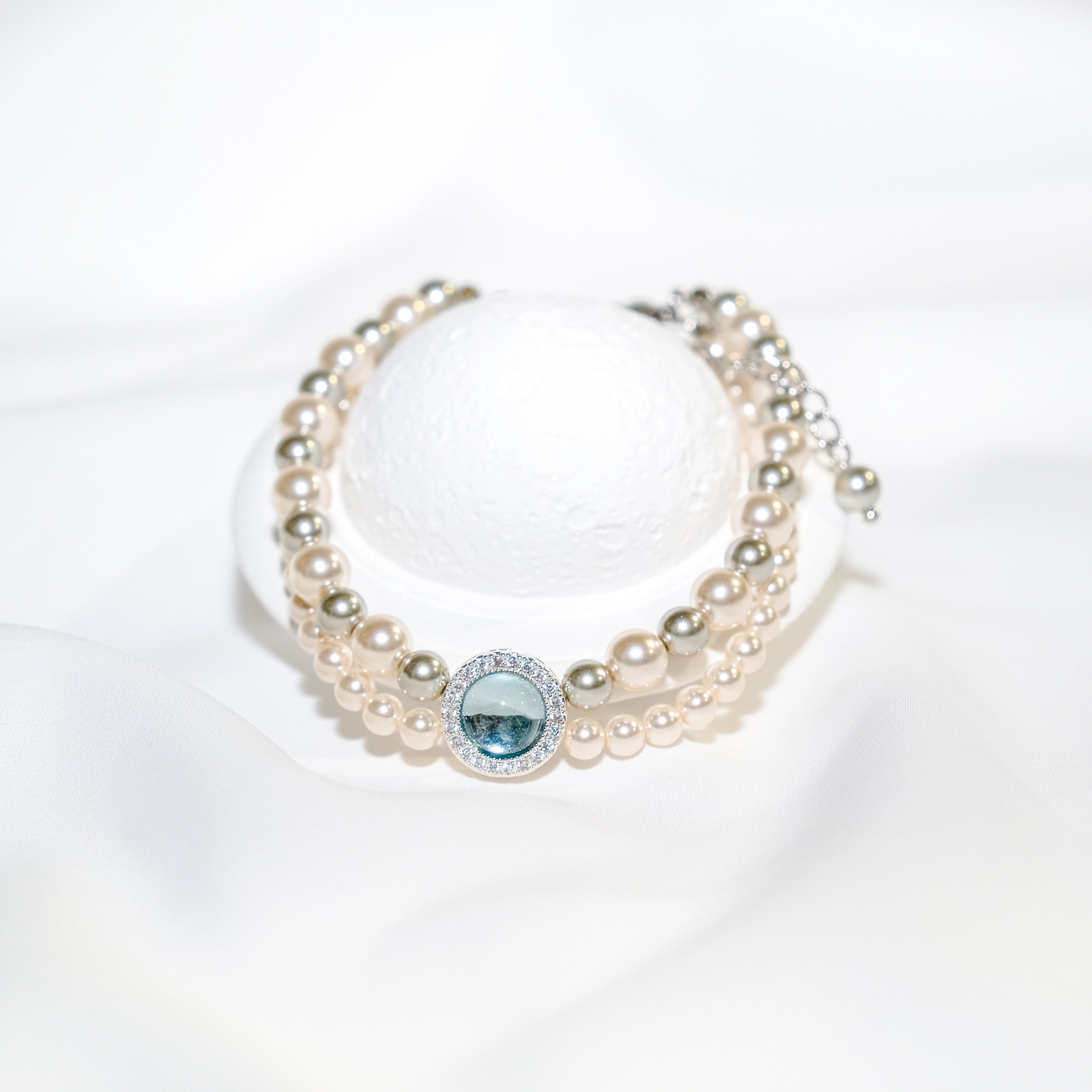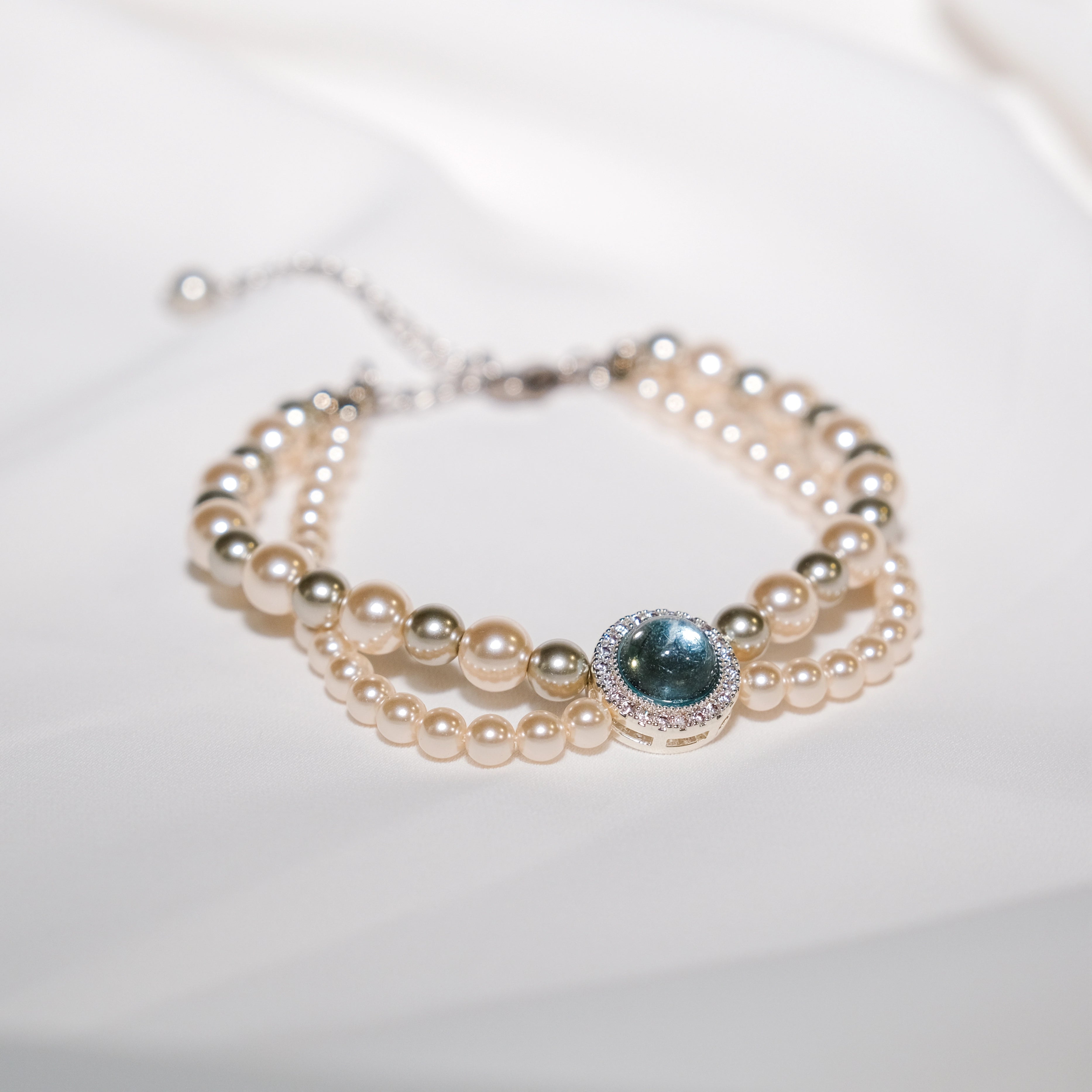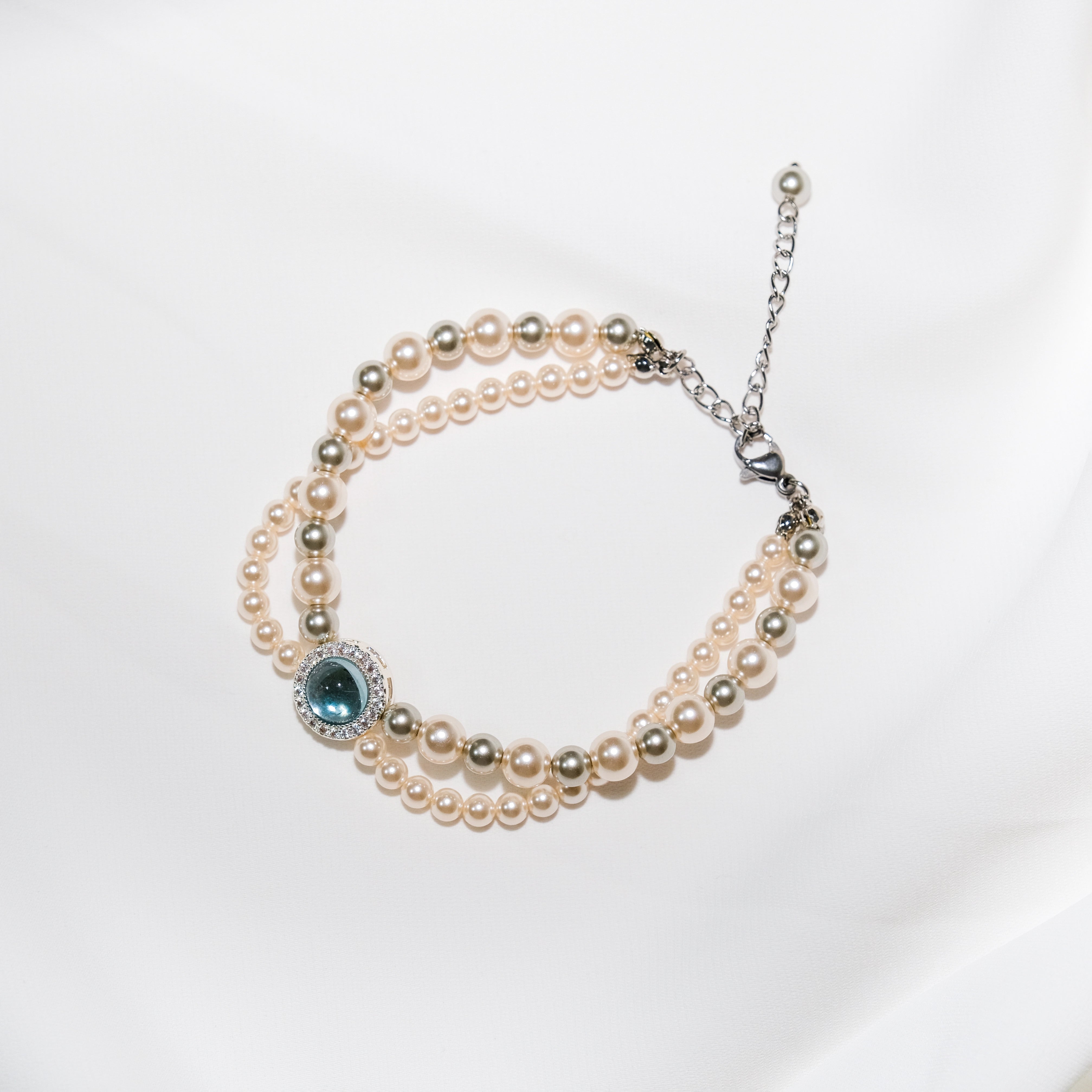 Double Strand Pearl Bracelet with Blue Topaz & CZ Accents