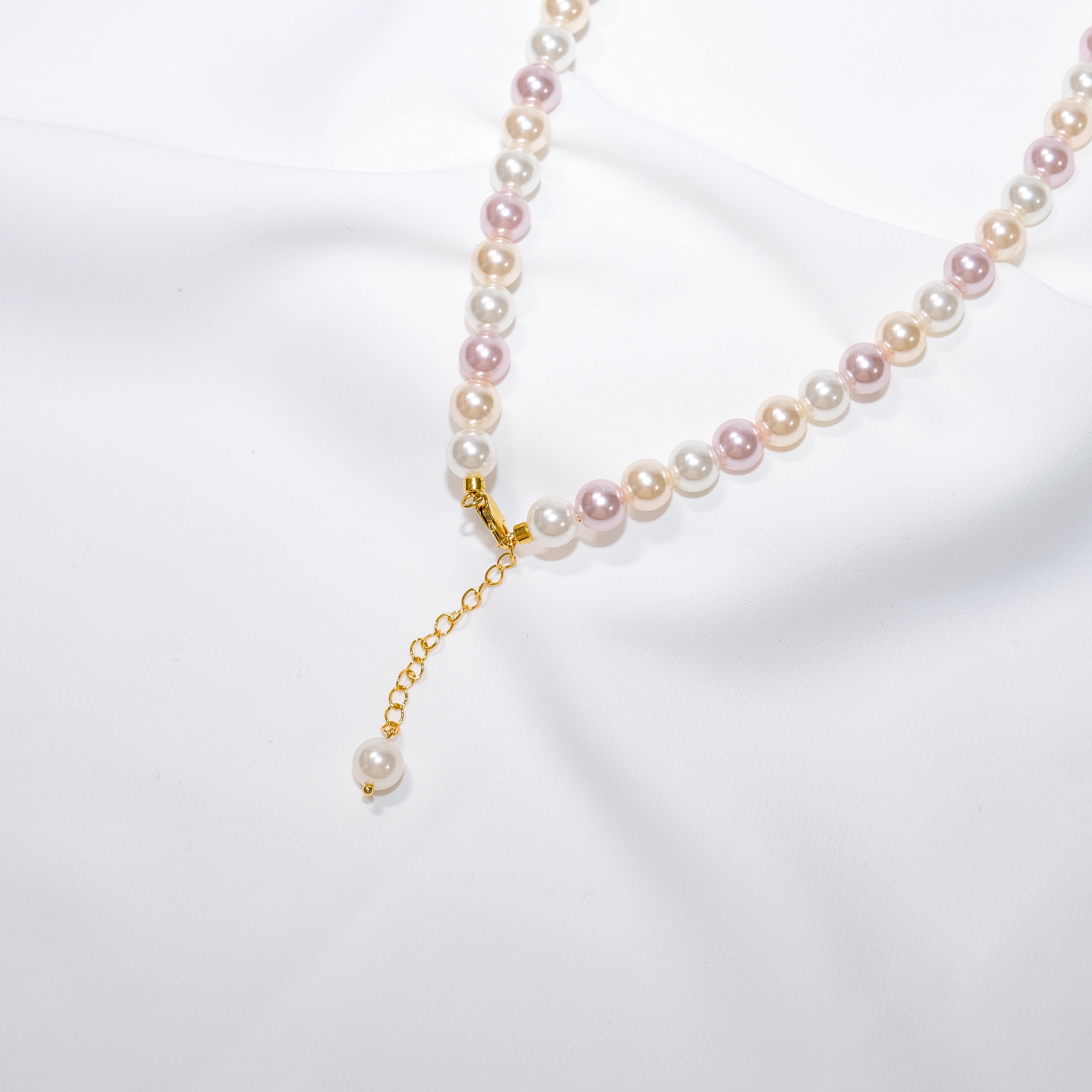 Soft Pink Gradient Pearl Beaded Necklace for Women