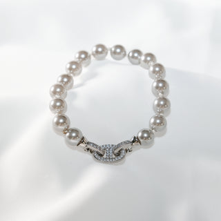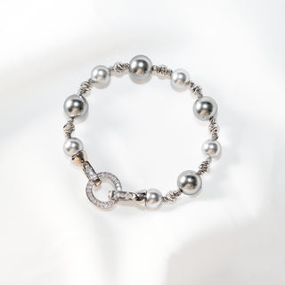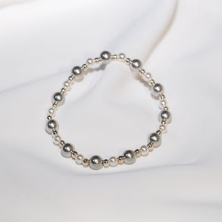 Gray & White Pearl Beaded Stretch Bracelet with Sterling Silver Accents
