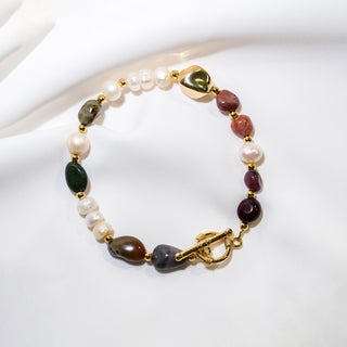 Pearl & Mother of Pearl Bracelet with Gold Plated Star Charms & Cubic Zirconia