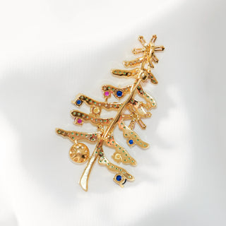 Gold Plated Christmas Tree Brooch with Freshwater Pearl & CZ Stones
