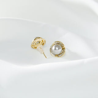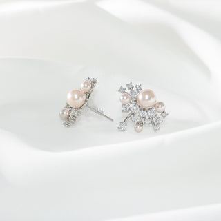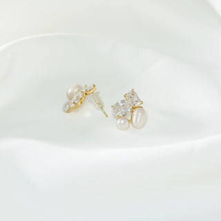 Freshwater Pearl & Cubic Zirconia Stud Earrings - S925 Silver Posts