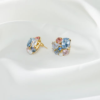 S925 Silver Classic Austrian Zircon Square Cut Bright Pearl Stud Earrings