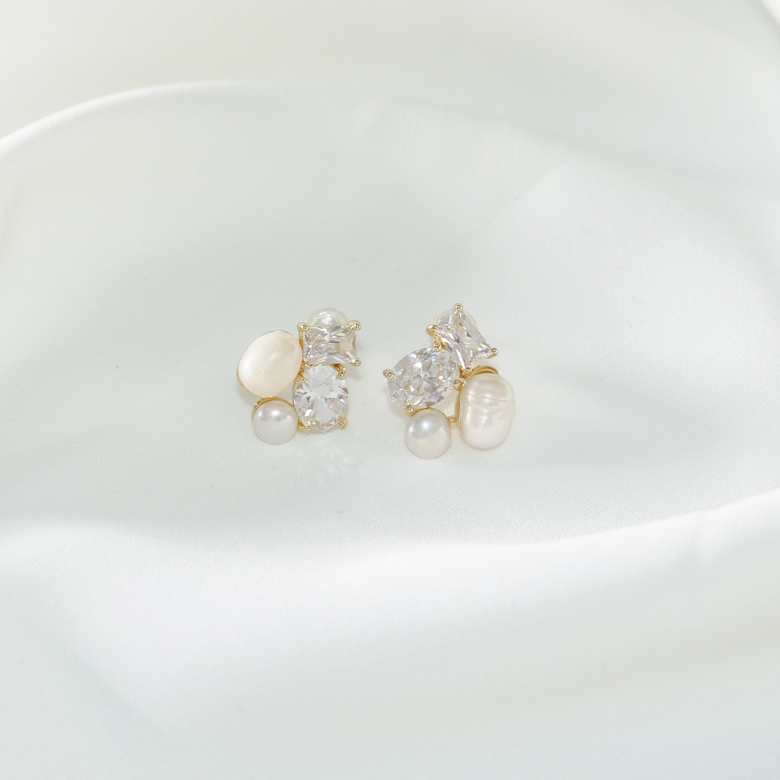 Freshwater Pearl & Cubic Zirconia Stud Earrings - S925 Silver Posts