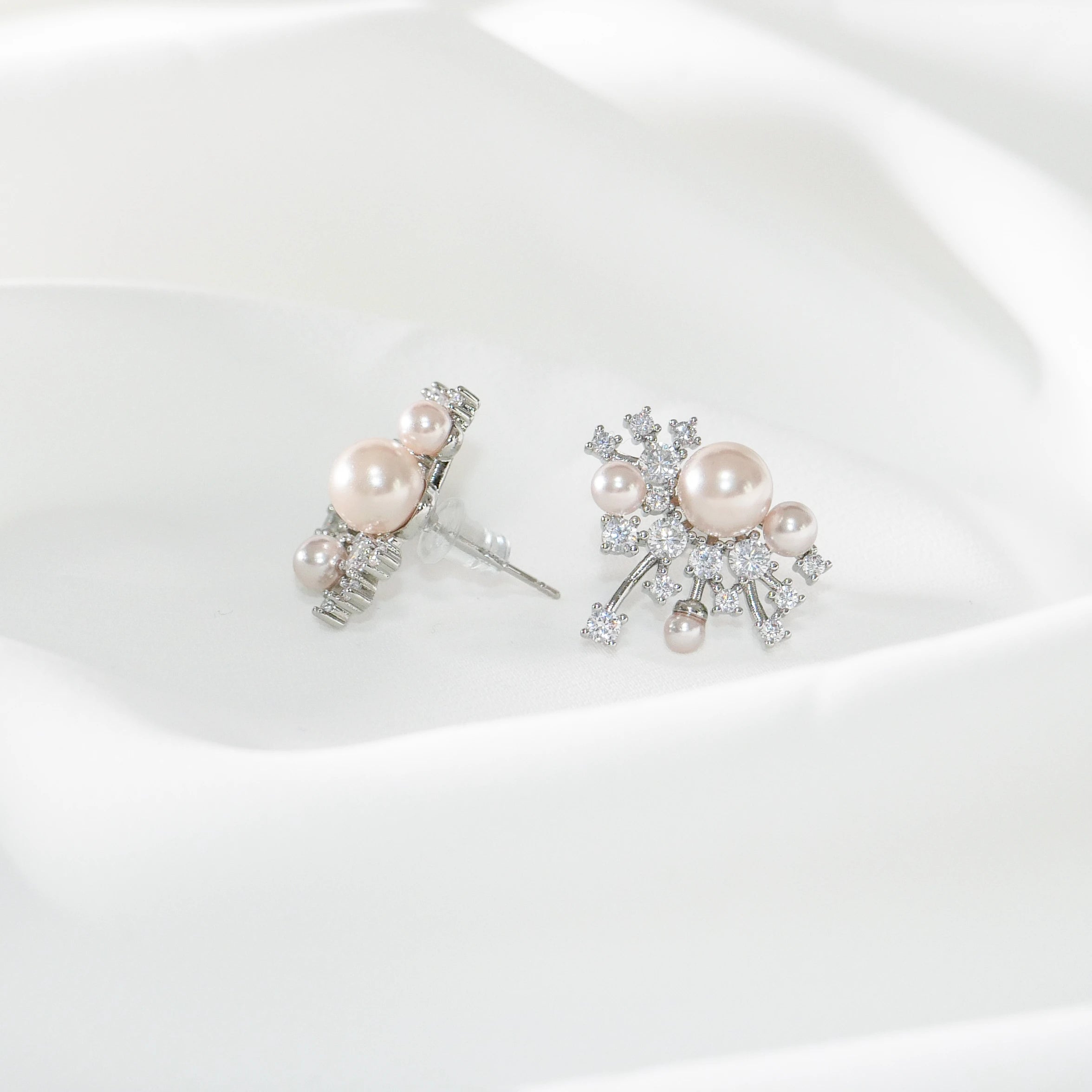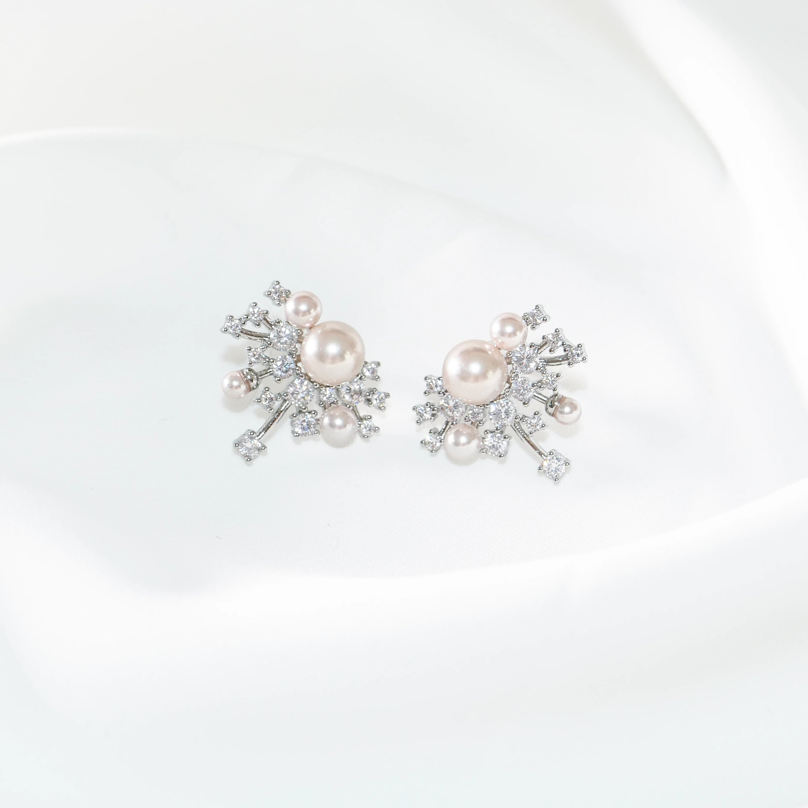 Elegant Pearl & CZ Stud Earrings – Vintage Snowflake Design