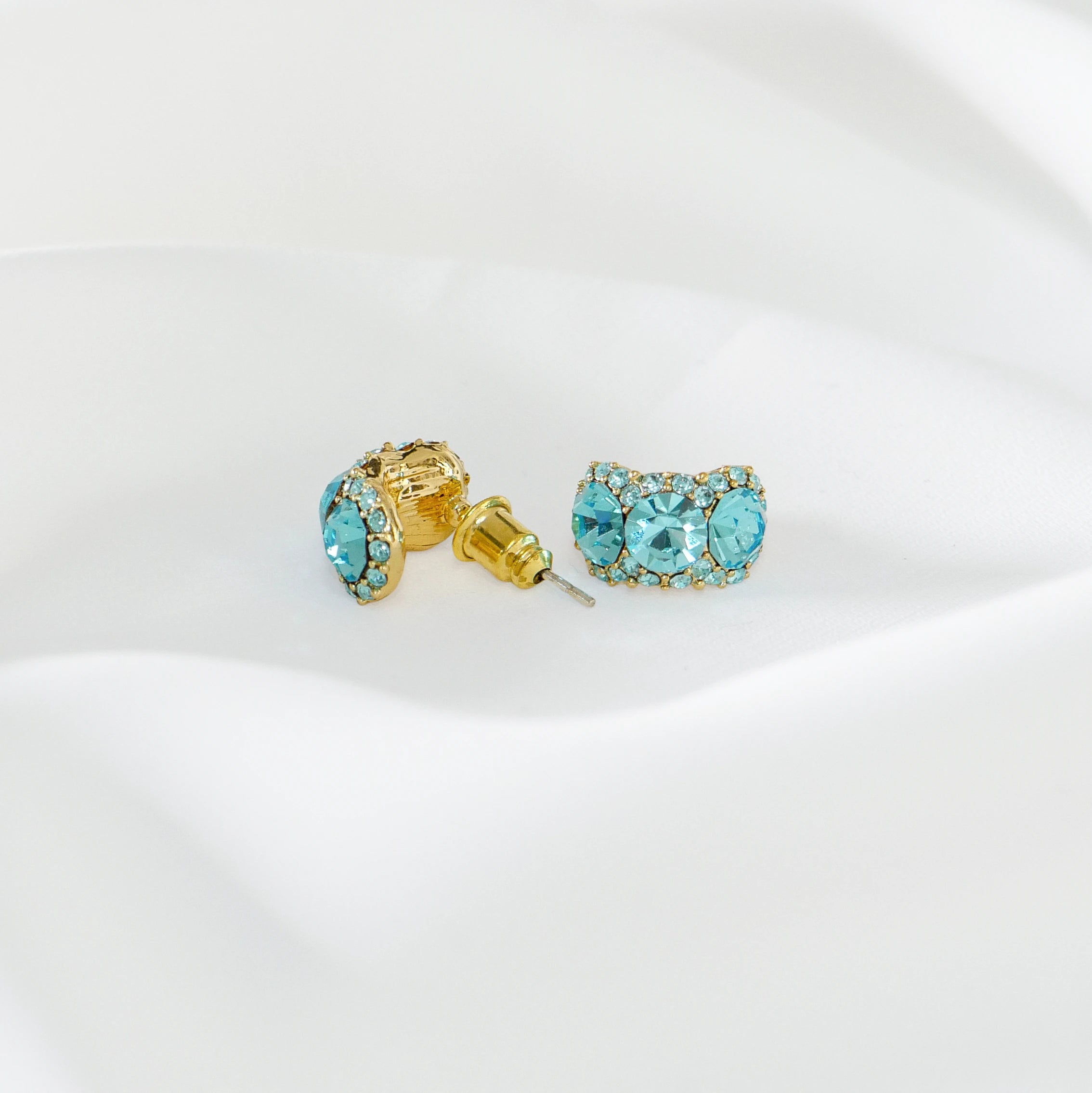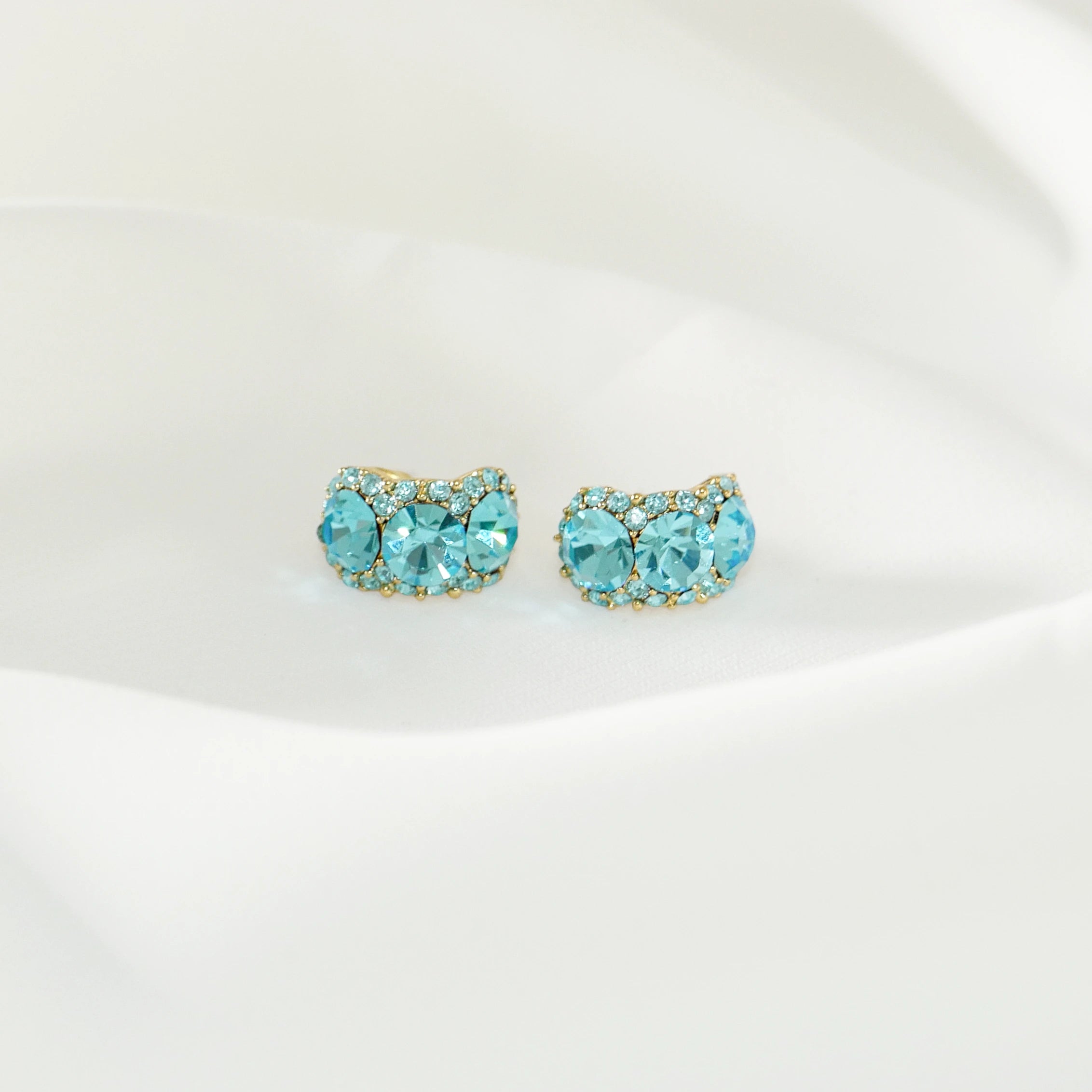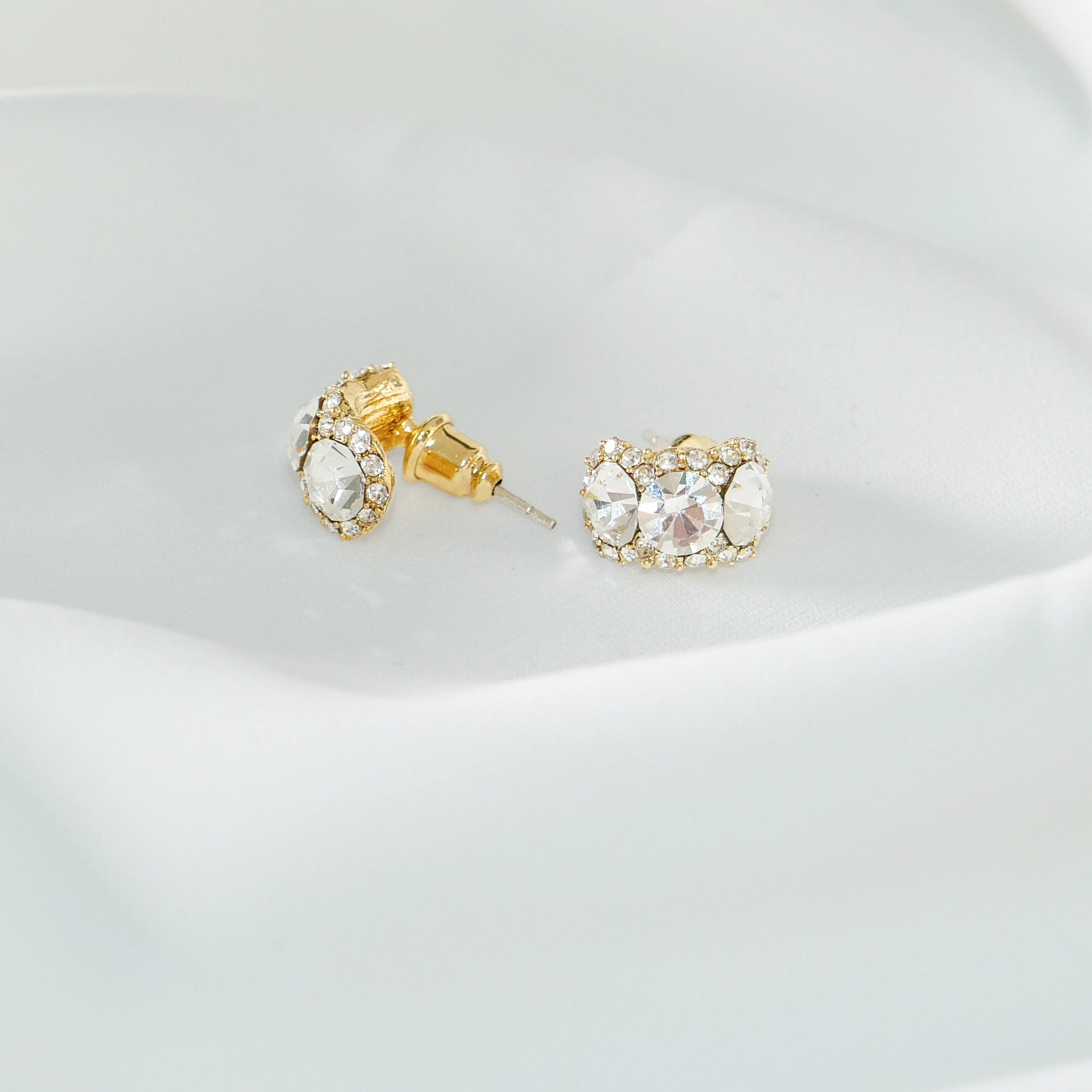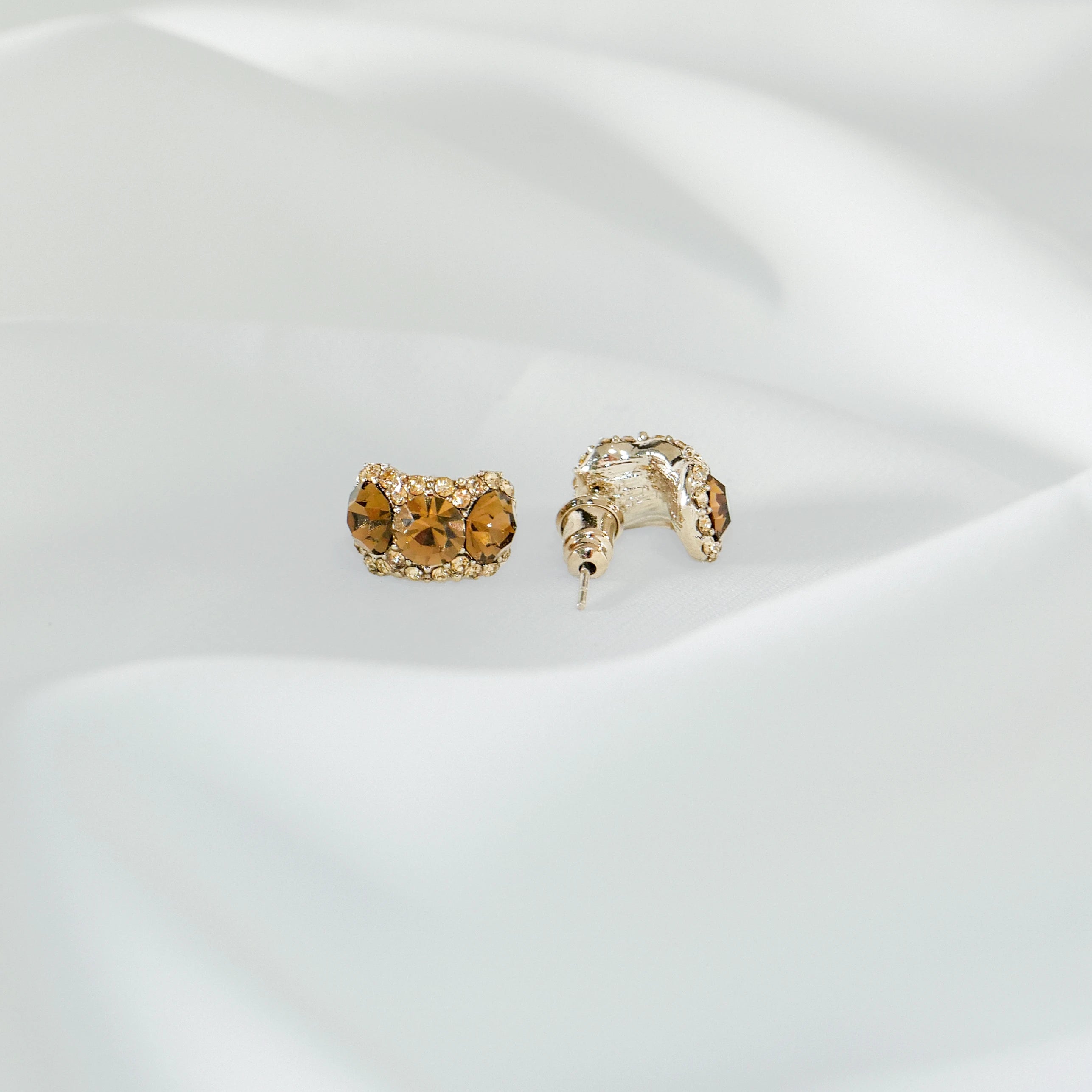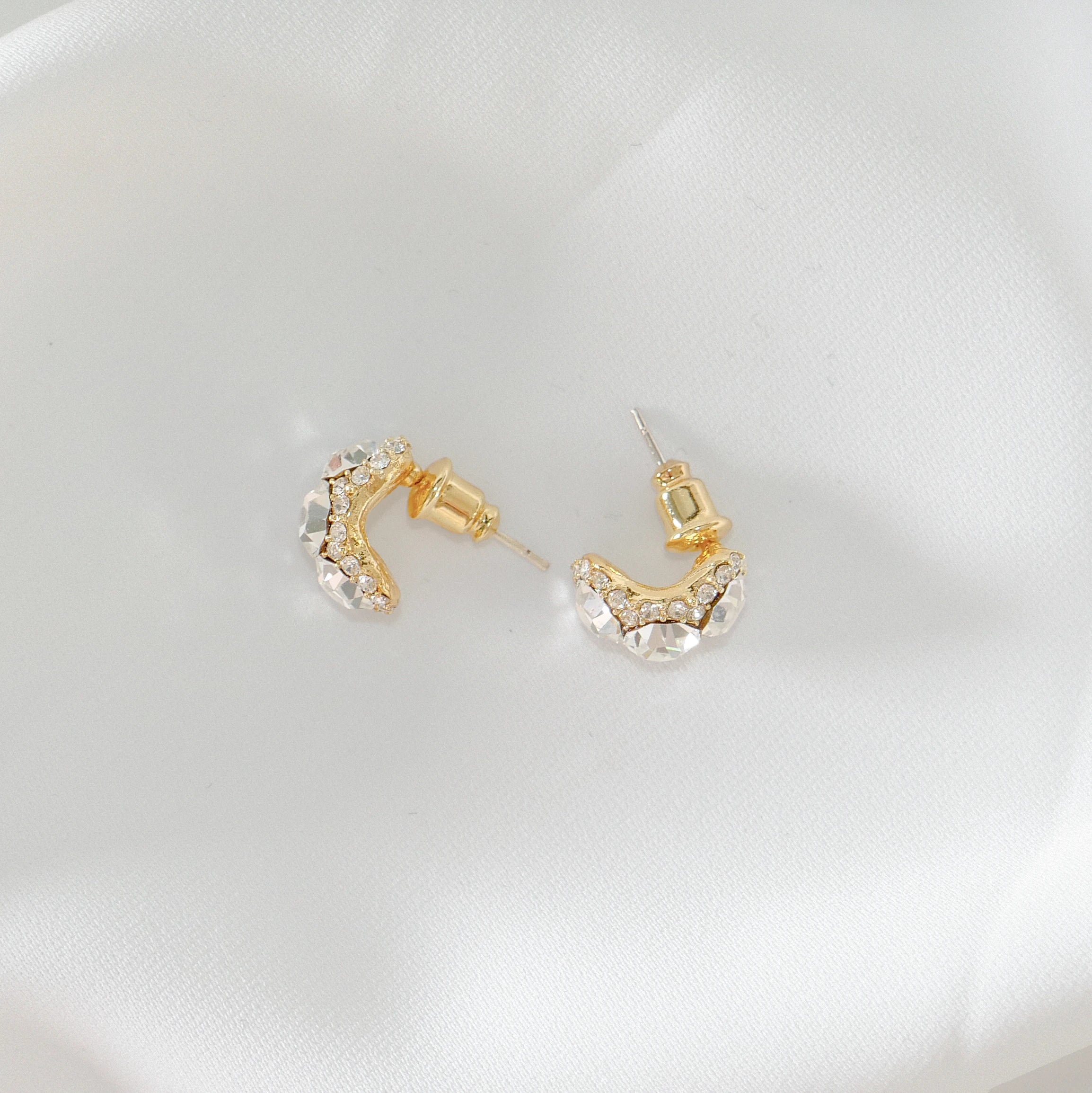 Crystal C-Ring Stud Earrings 925 Silver Post