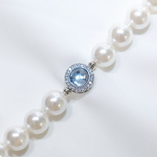 Natural Aquamarine & CZ Accent Pearl Necklace – Elegant White Freshwater Pearl Jewelry