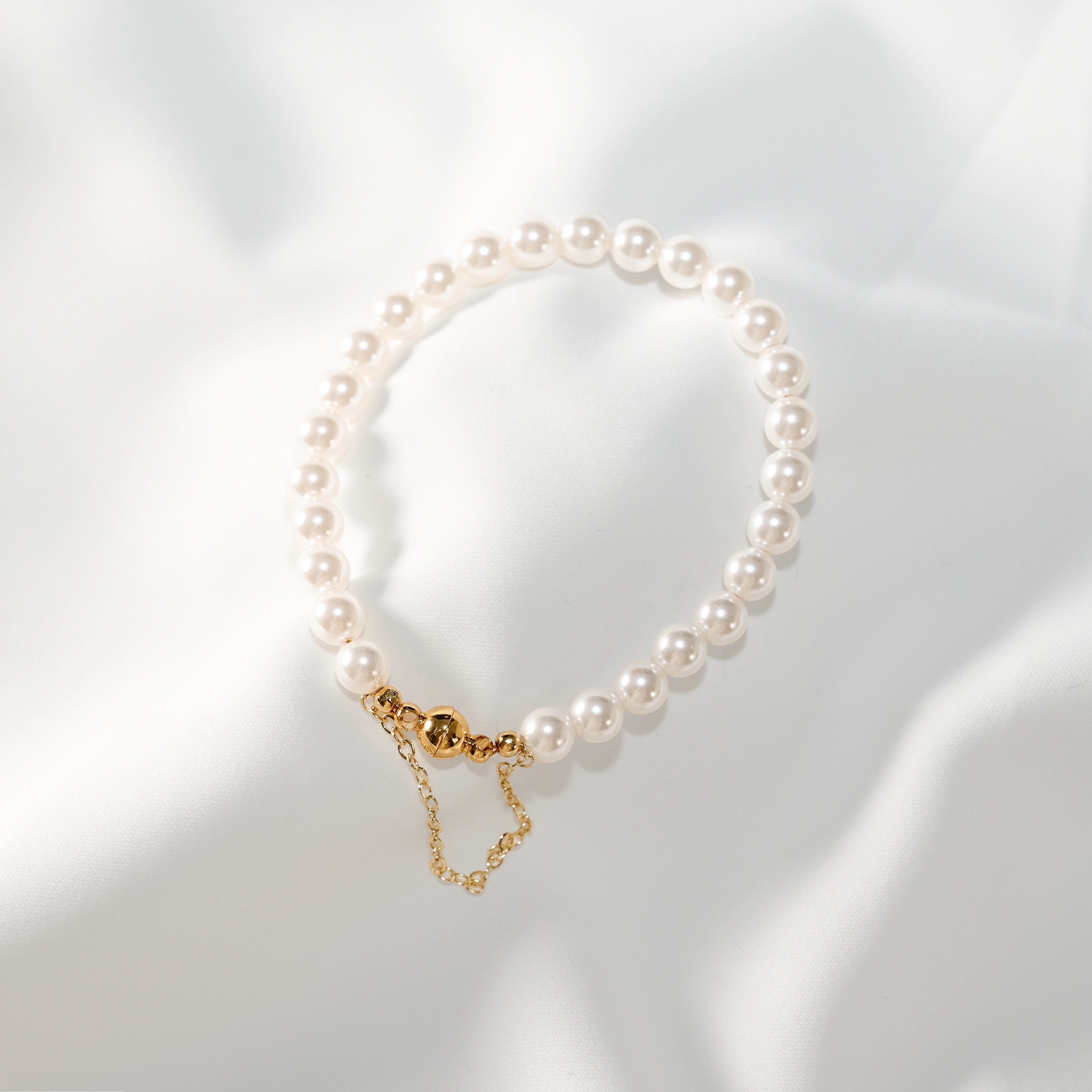 6mm Freshwater Pearl Bracelet with Gold Magnetic Clasp