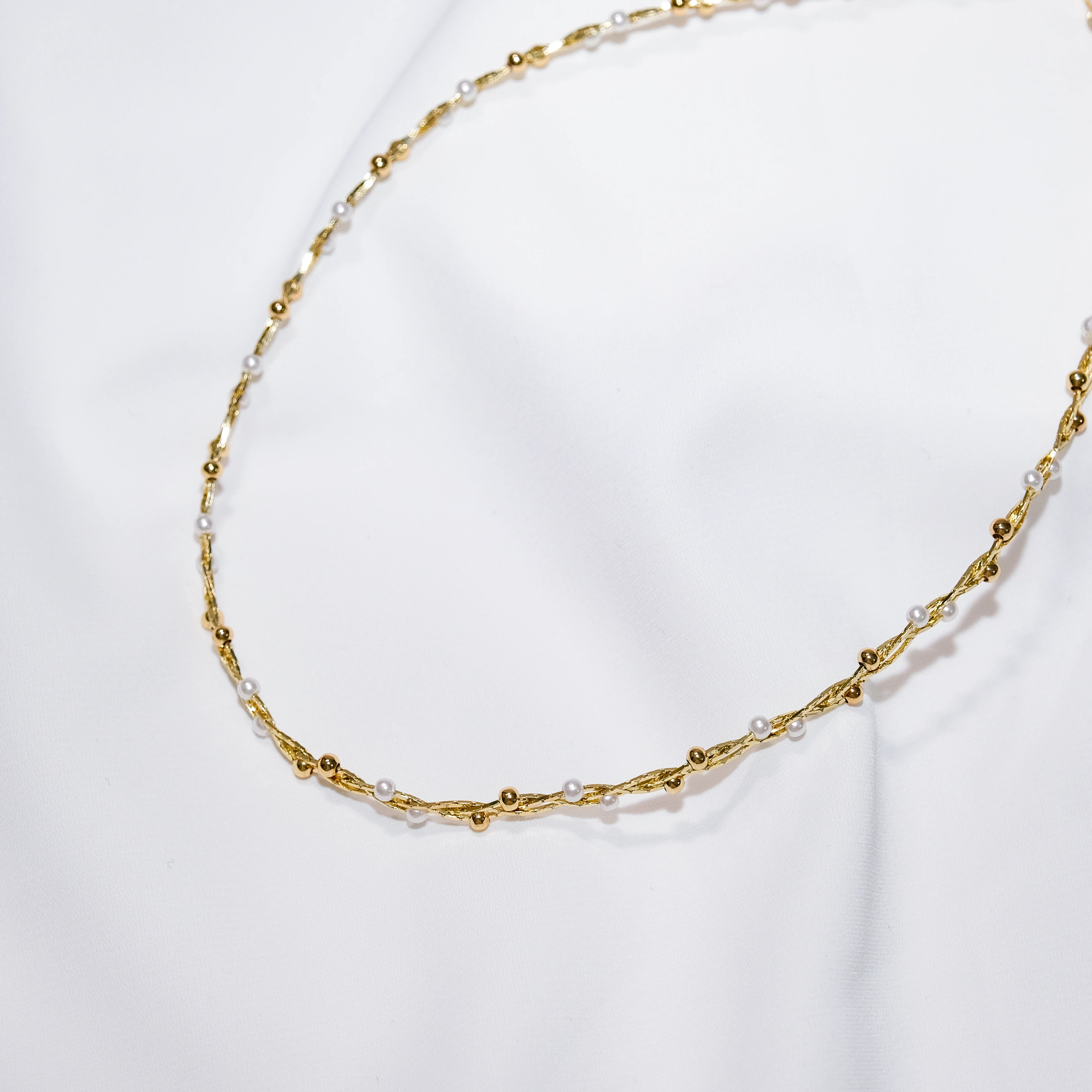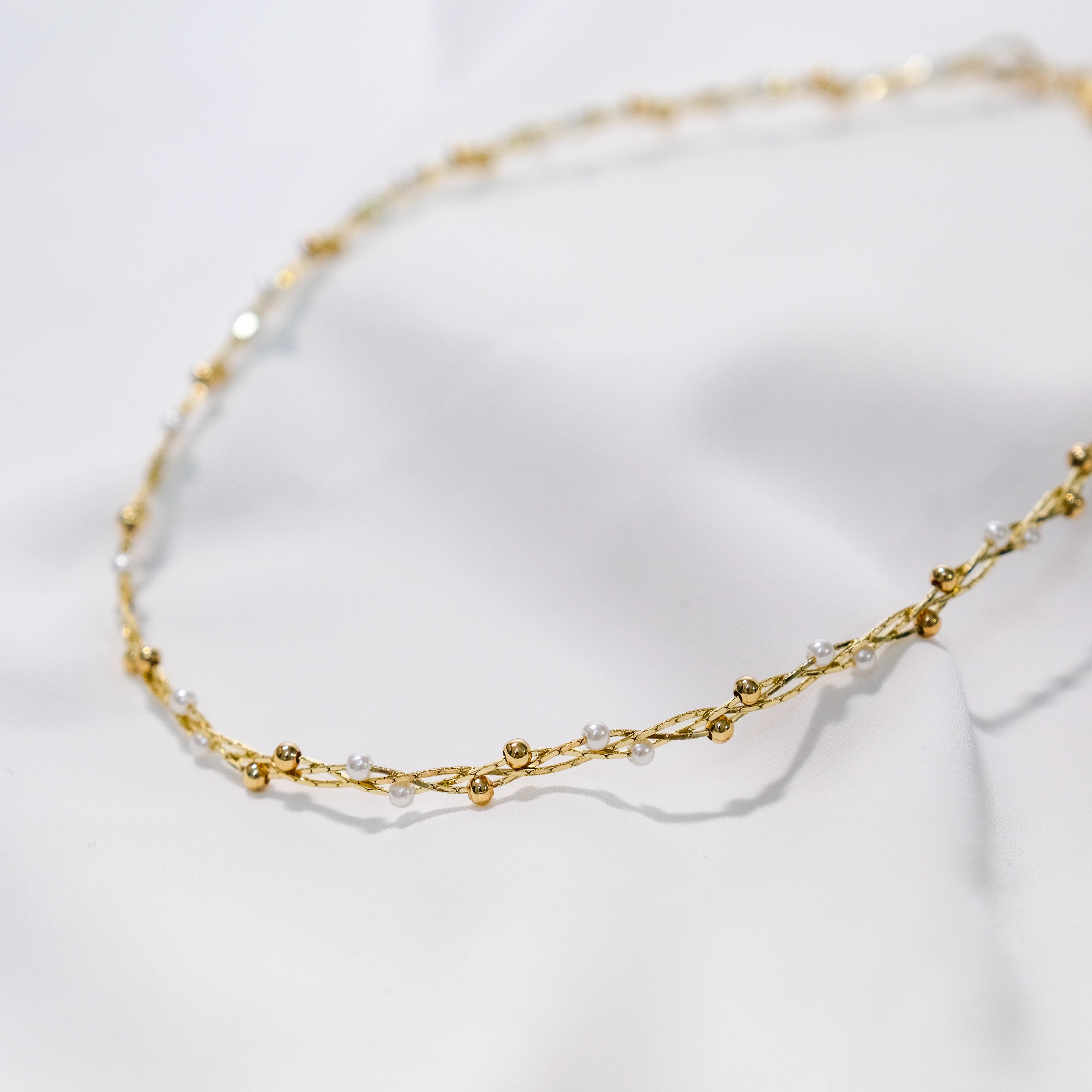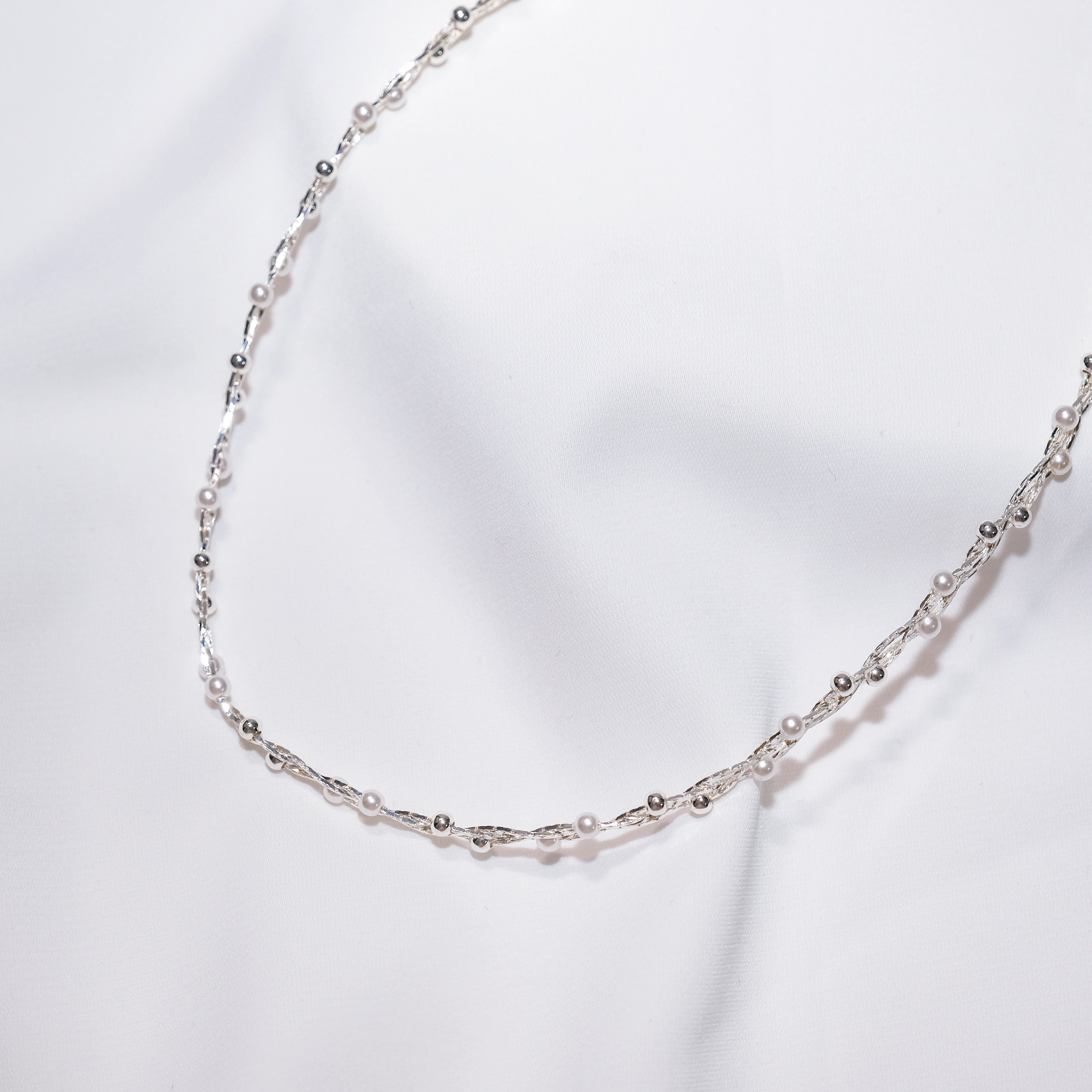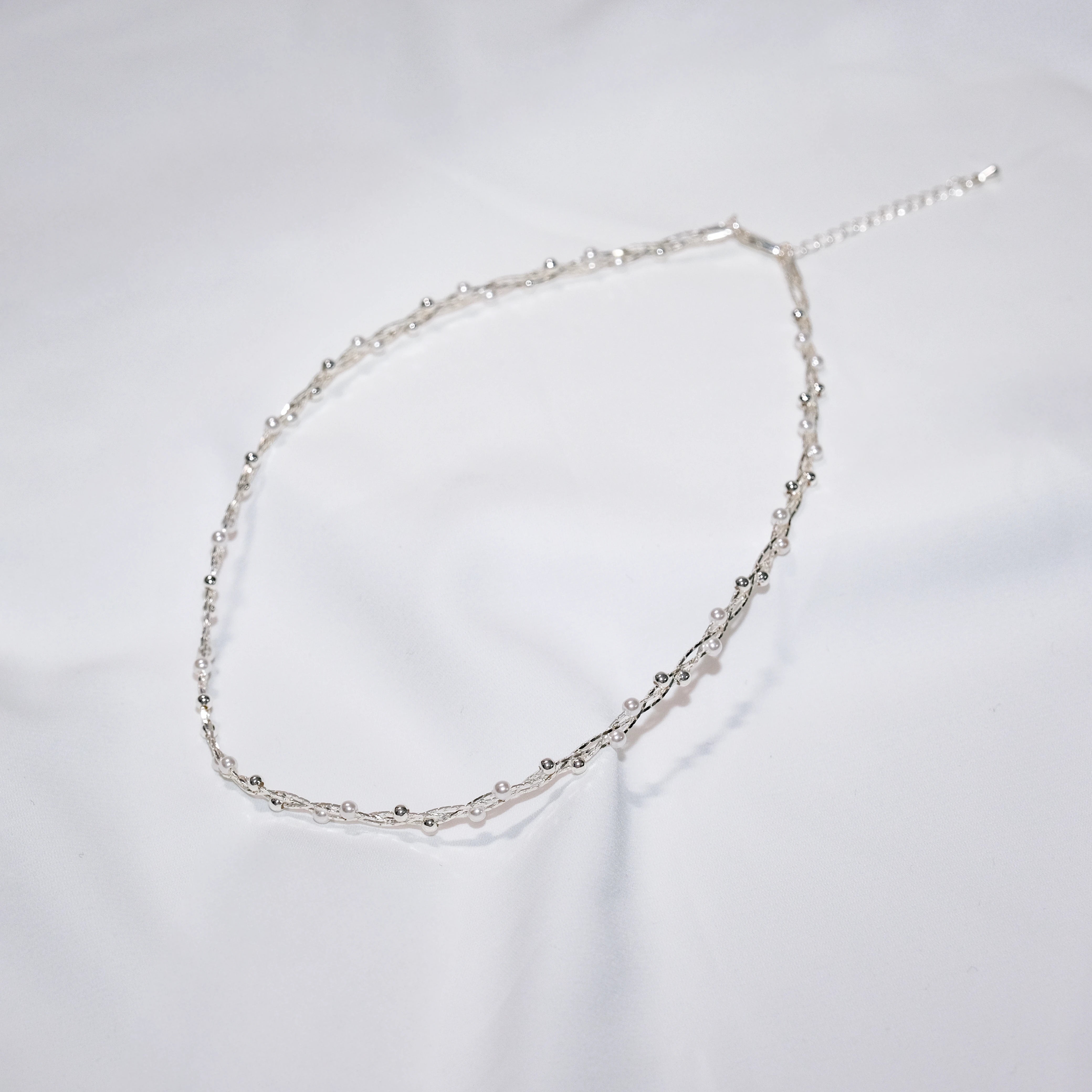 Vintage Braided Baby Bead Necklace in Sterling Silver
