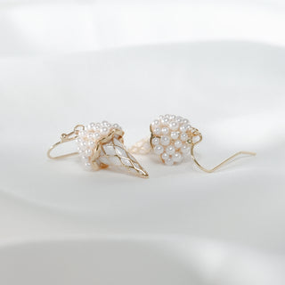 Sweet Cone Ice Cream 925 Sterling Silver Earrings with Gold Accent & Baby Pearls