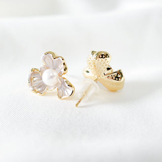 Elegant Pearl & Cubic Zirconia Stud Earrings with 925 Sterling Silver Posts