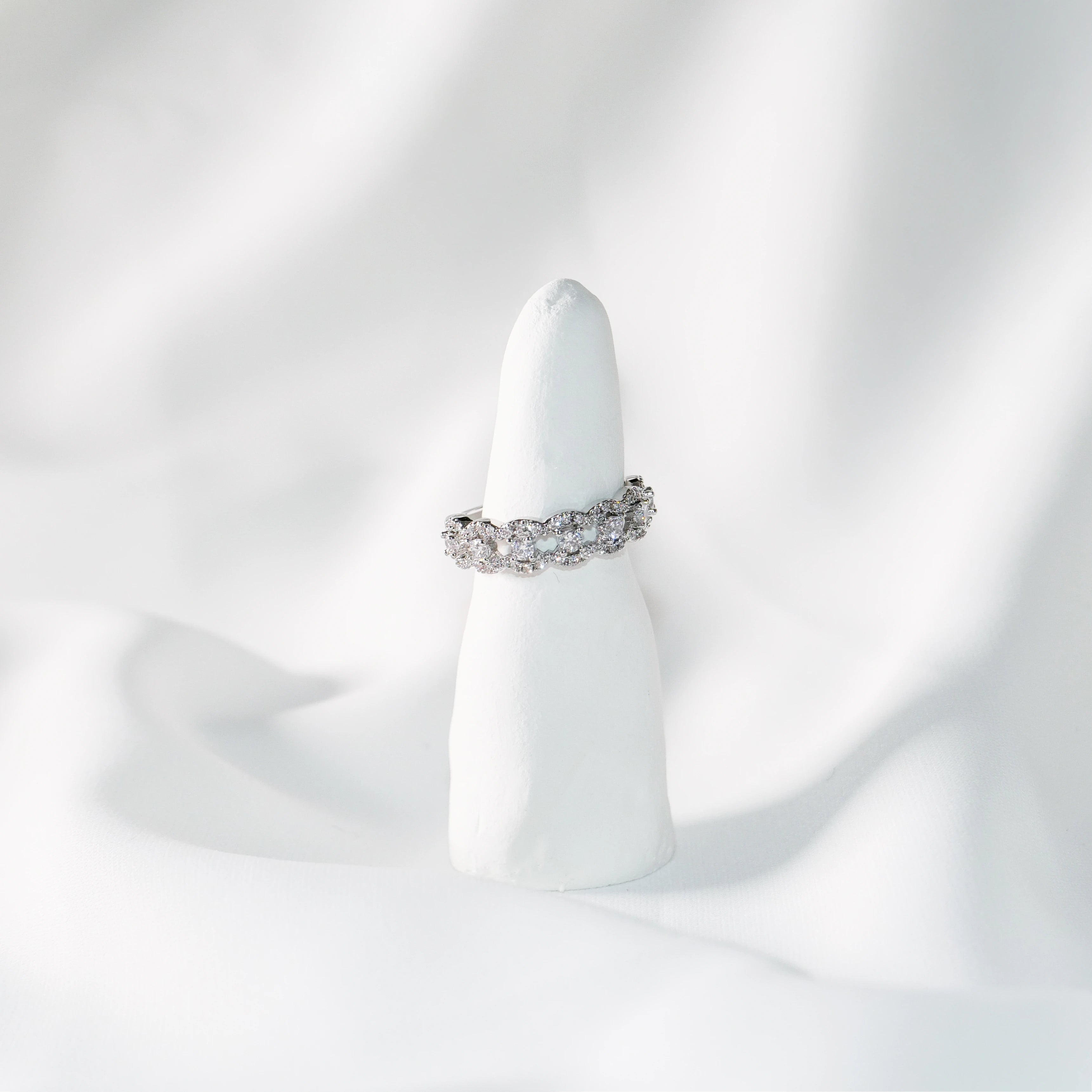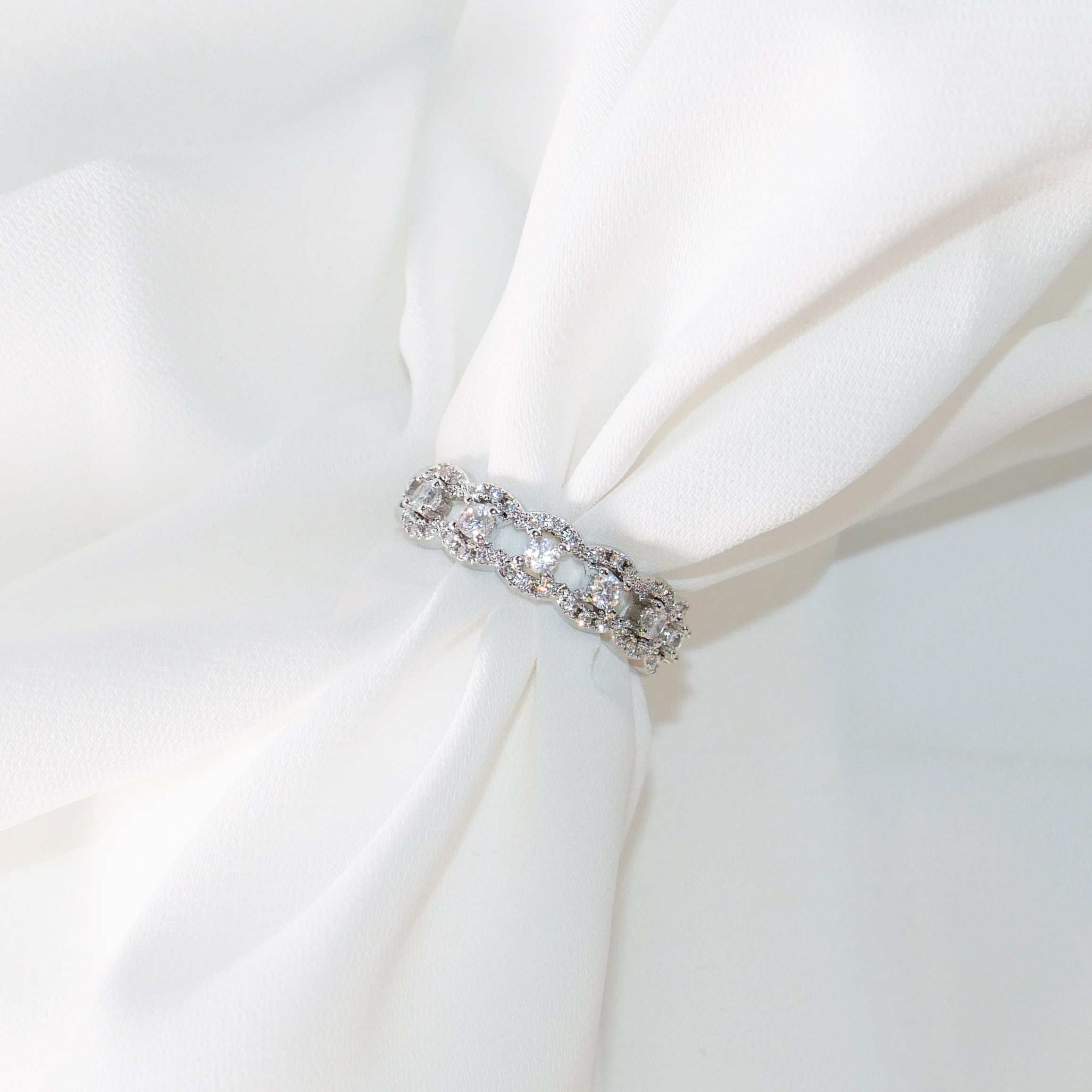 Silver Lace CZ Ring | Elegant Open Band Stackable