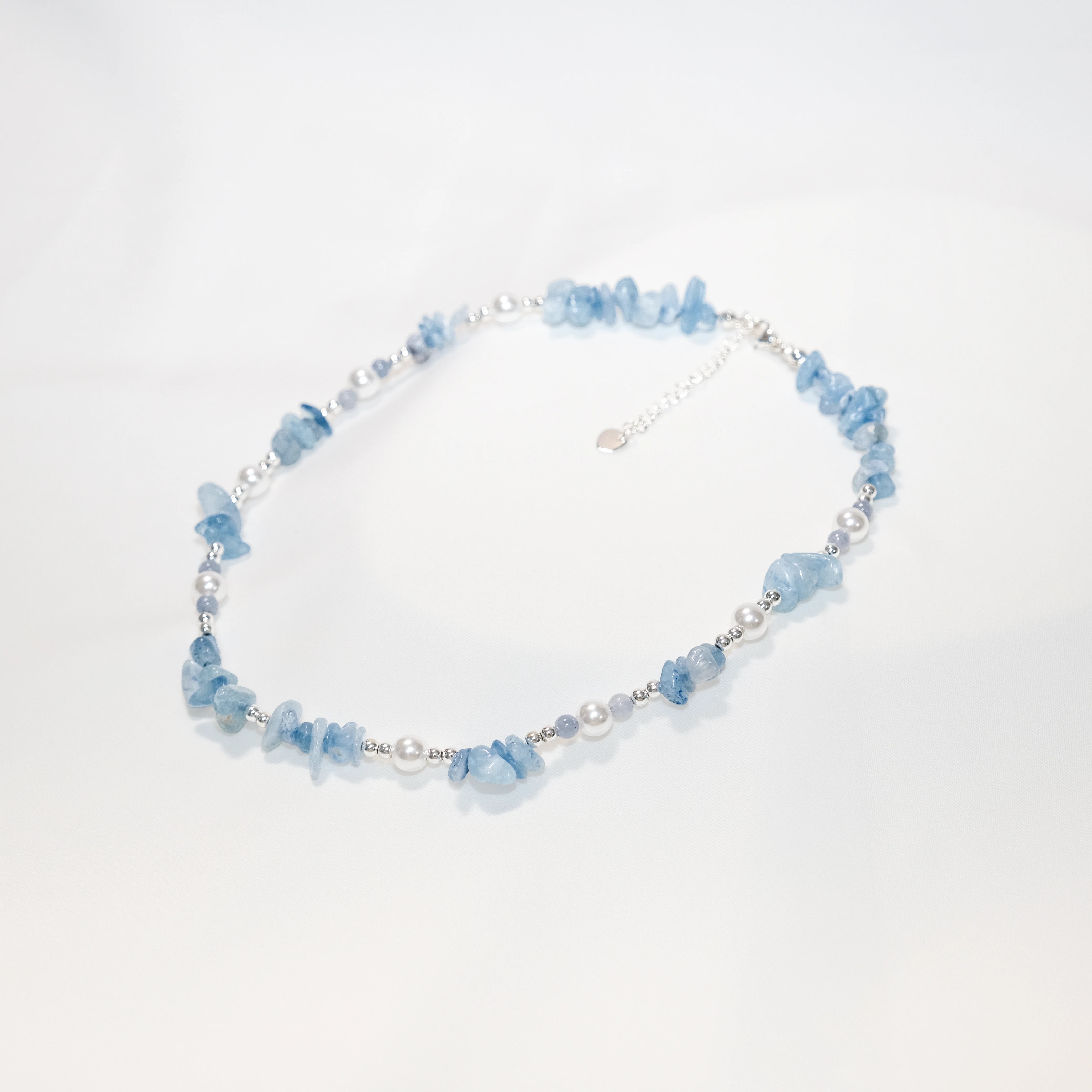 Glacier Blue Natural Gemstone & Pearl Jewelry Set – Necklace & Bracelet