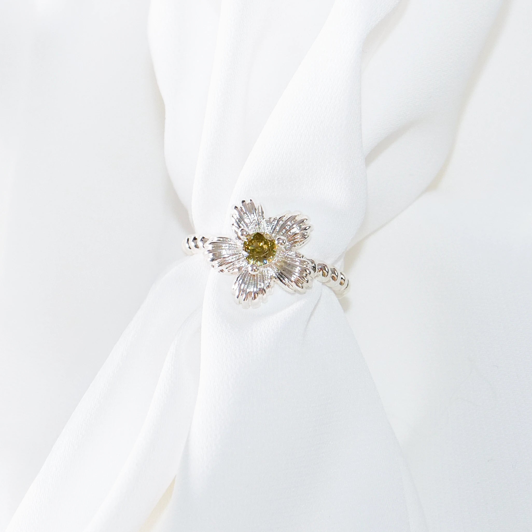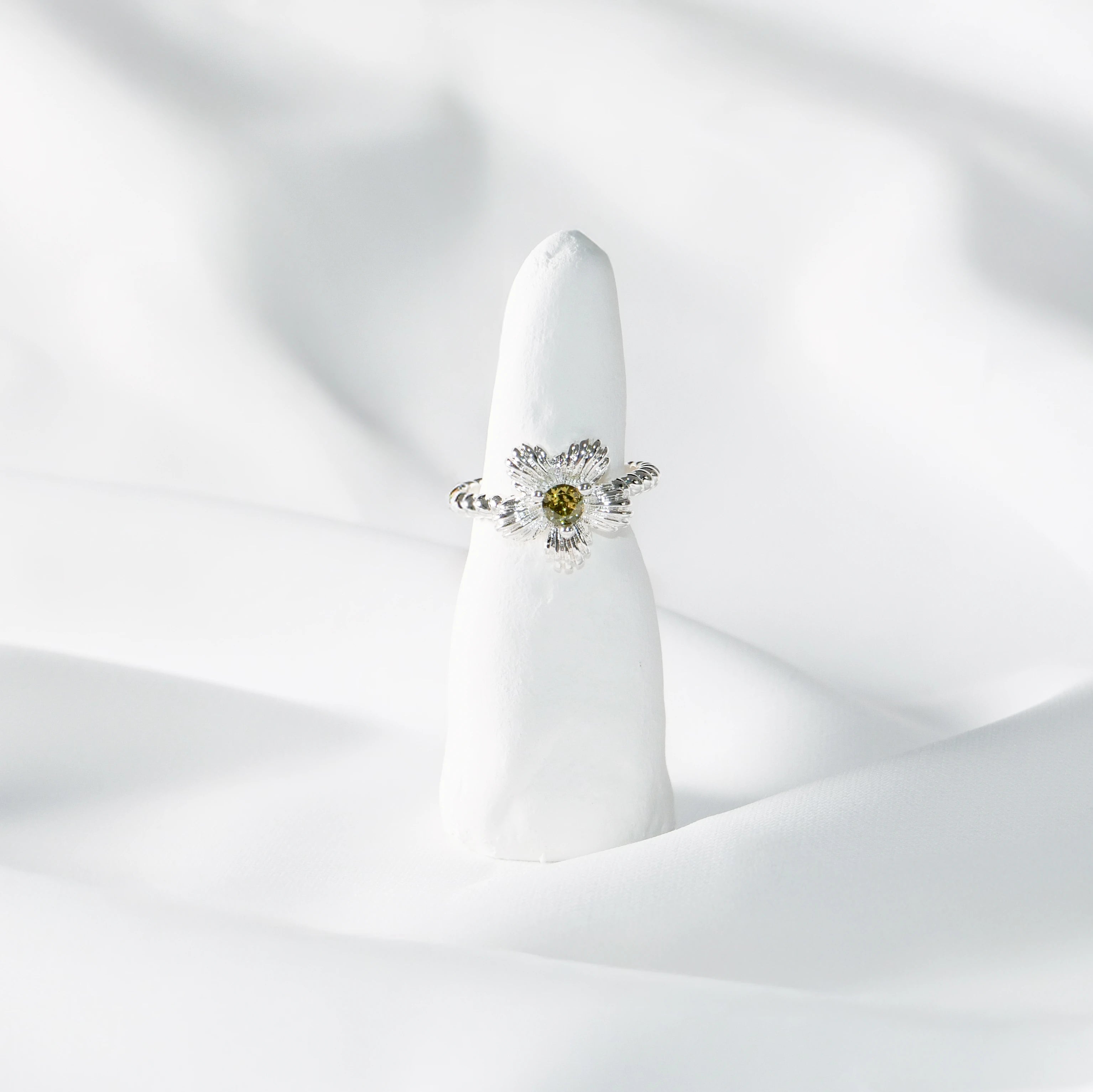 Sterling Silver Daisy Ring with Citrine Center – Adjustable
