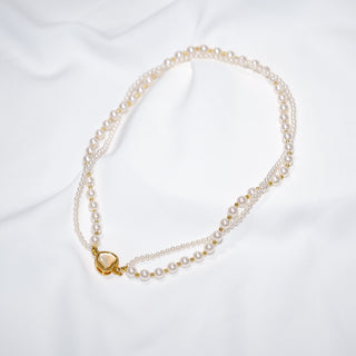 Layered Shell Pearl Necklace, Double Strand Pearl Chain (2mm 8mm 10mm)