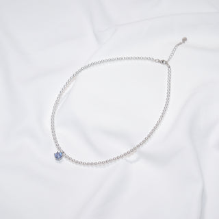 Sterling Silver Pearl Necklace with Detachable Cushion-Cut CZ Pendant