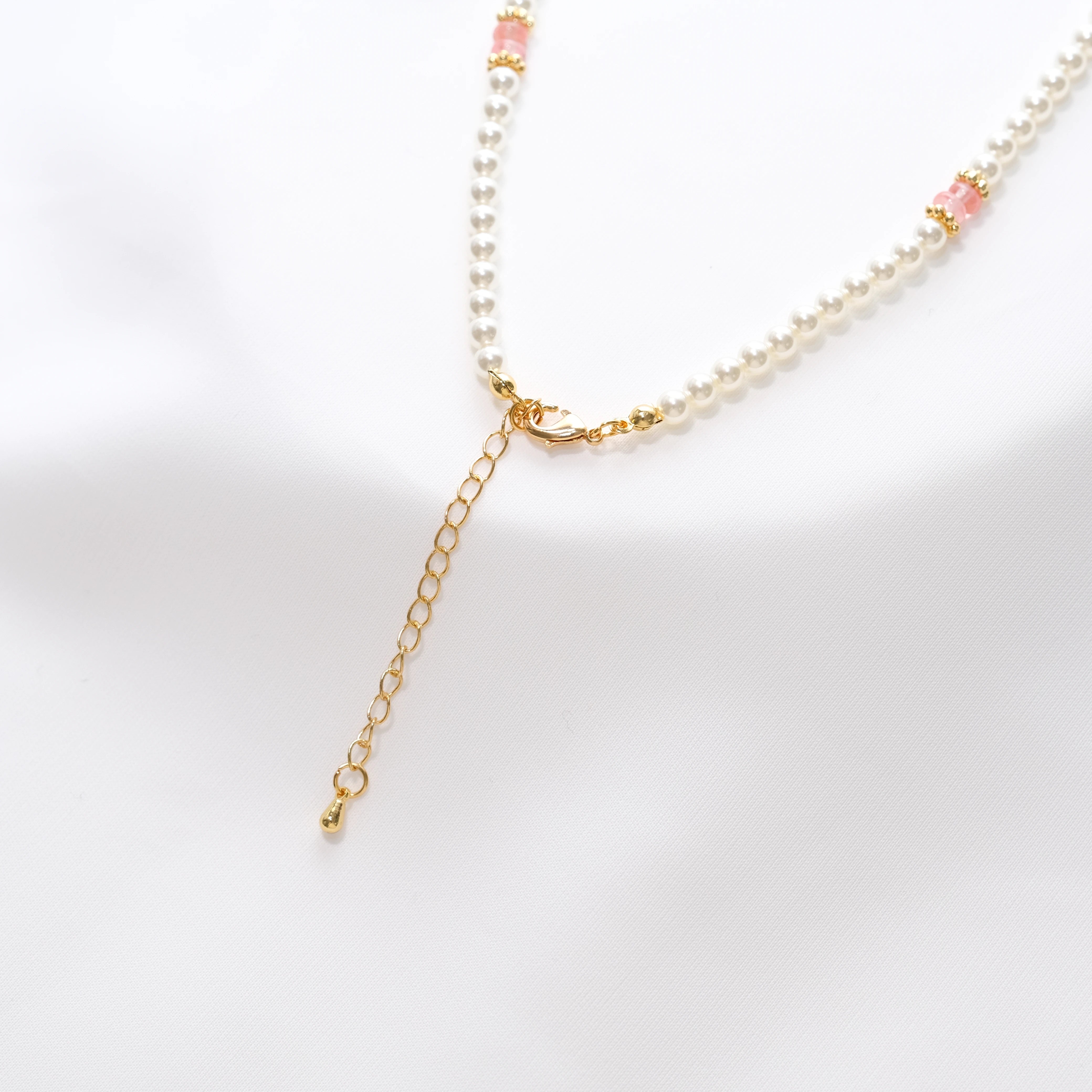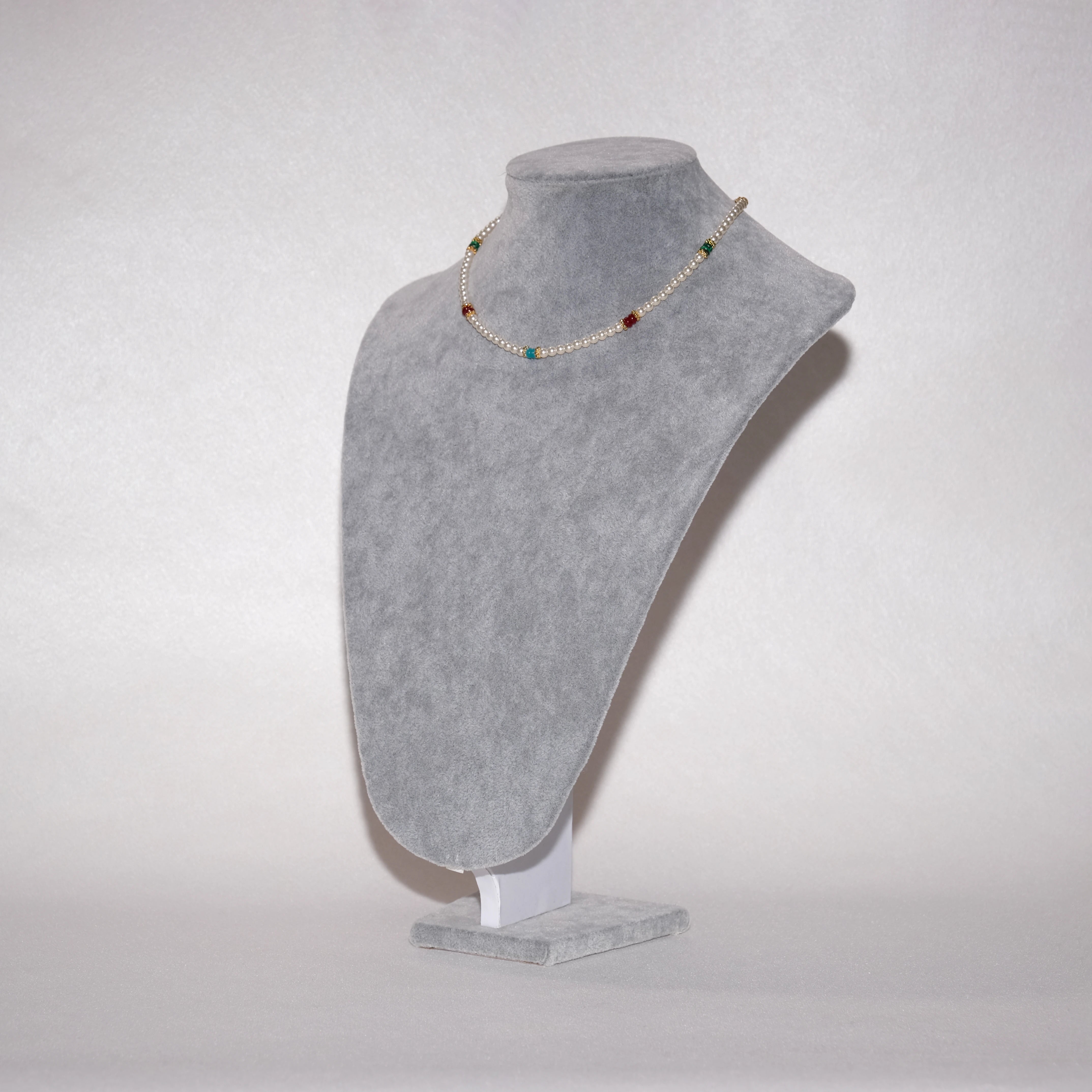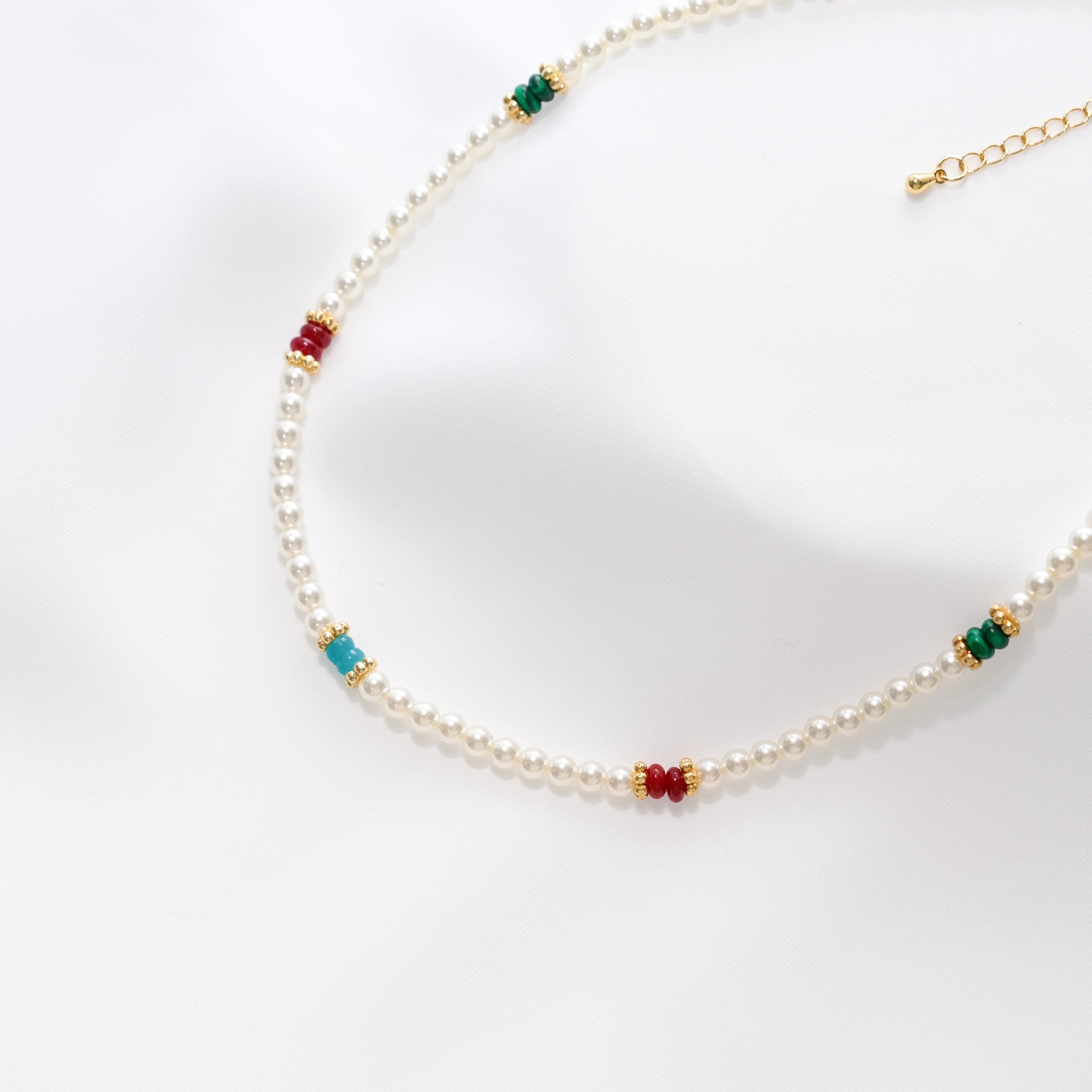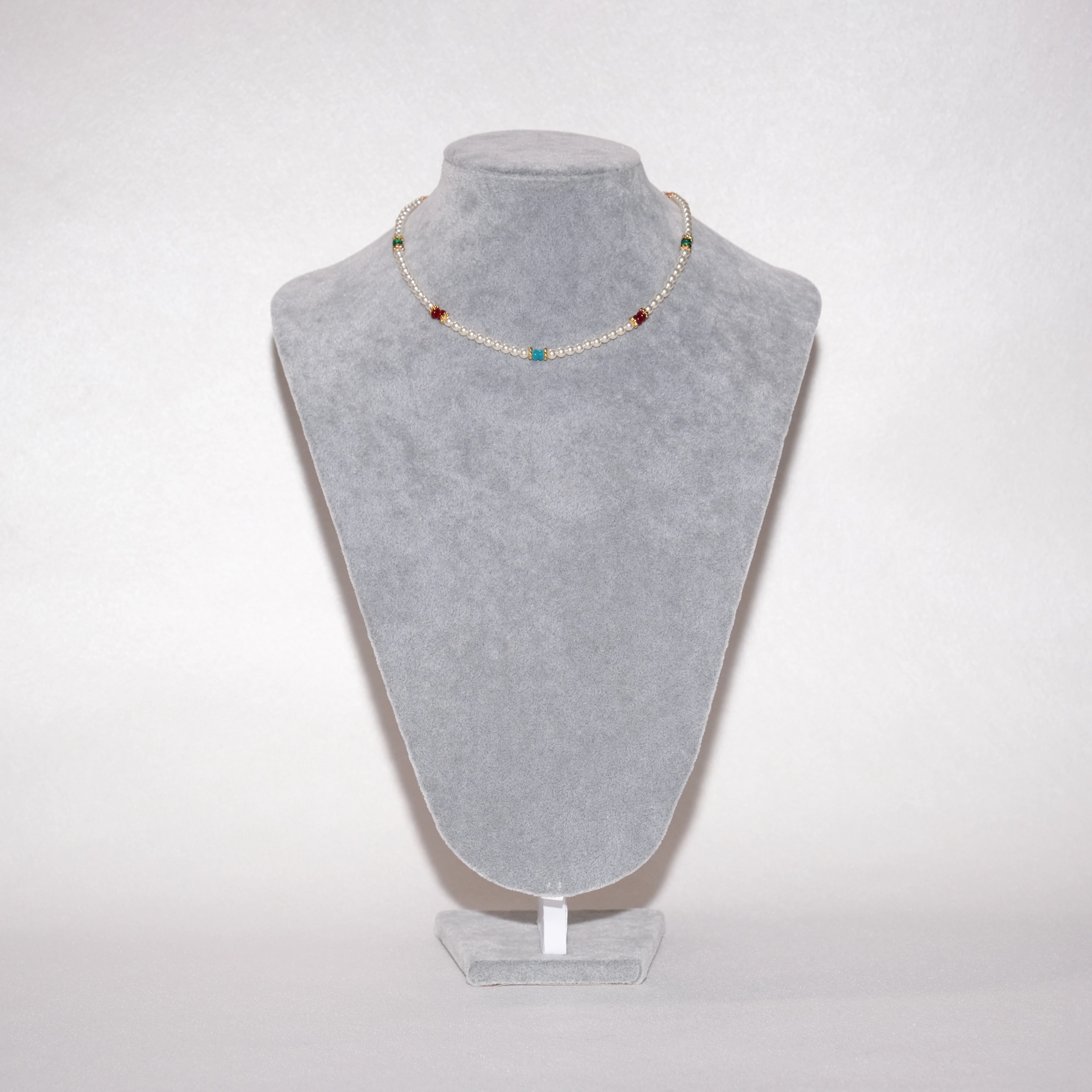 Colorful Beaded Pearl Choker Necklace with Gold Accents – Baby Pearl, 39+7cm