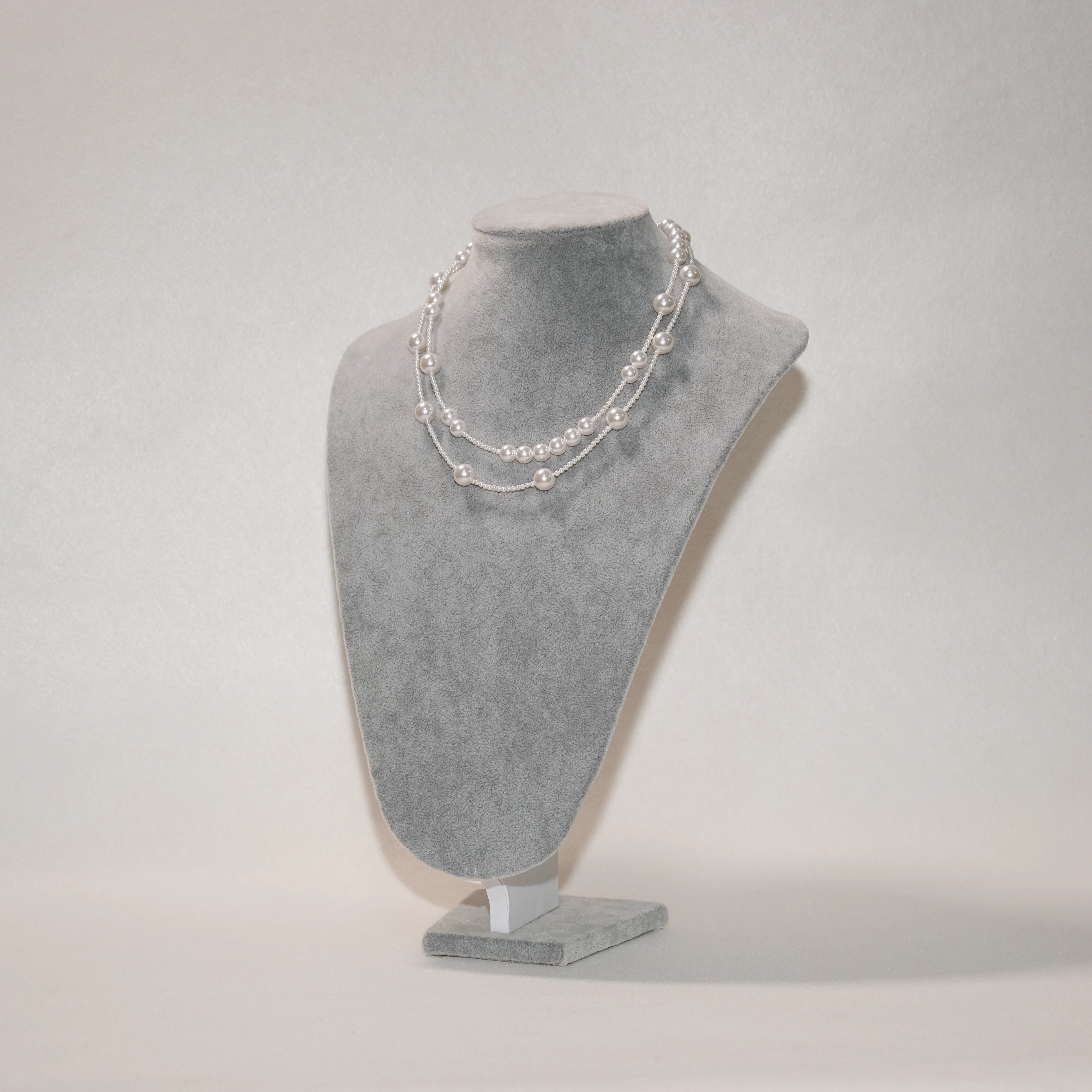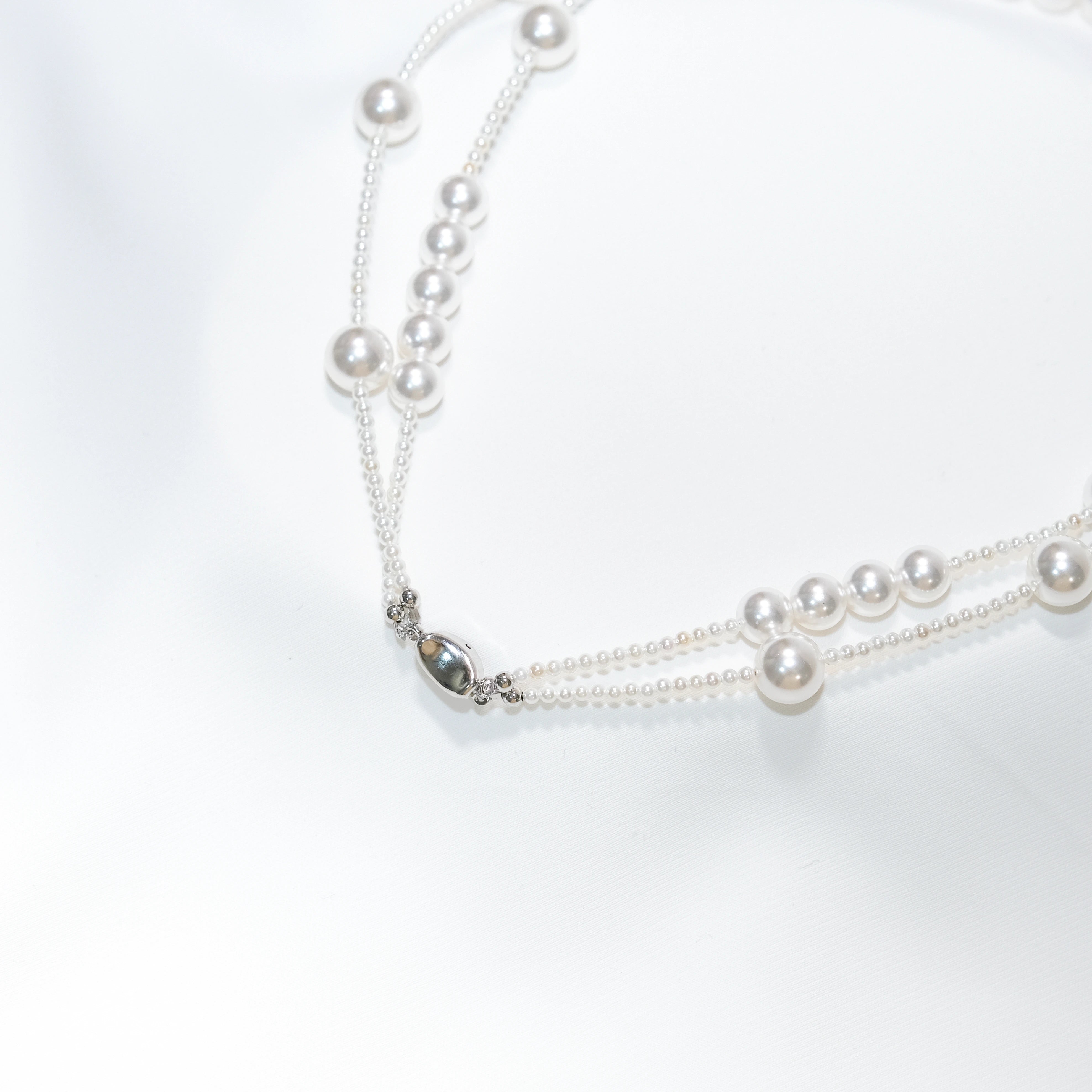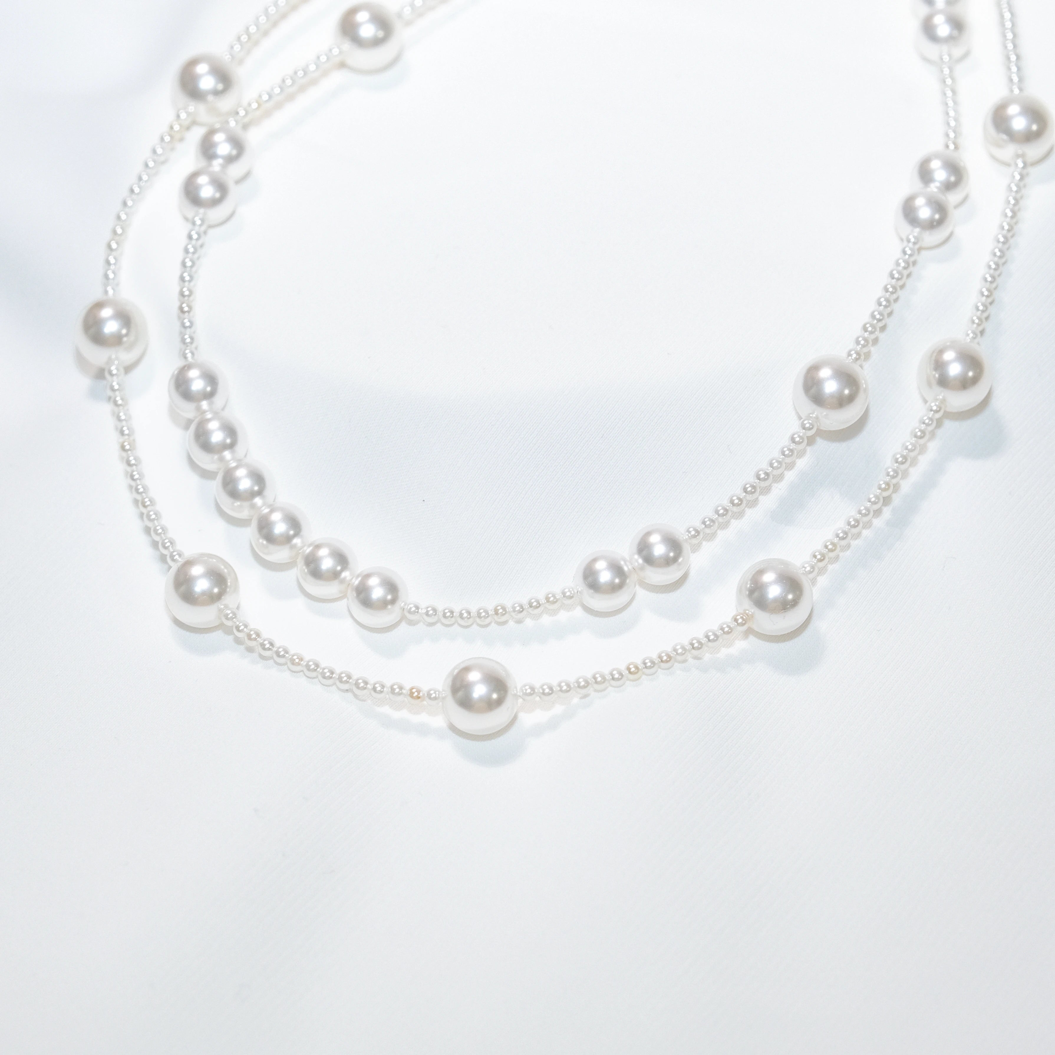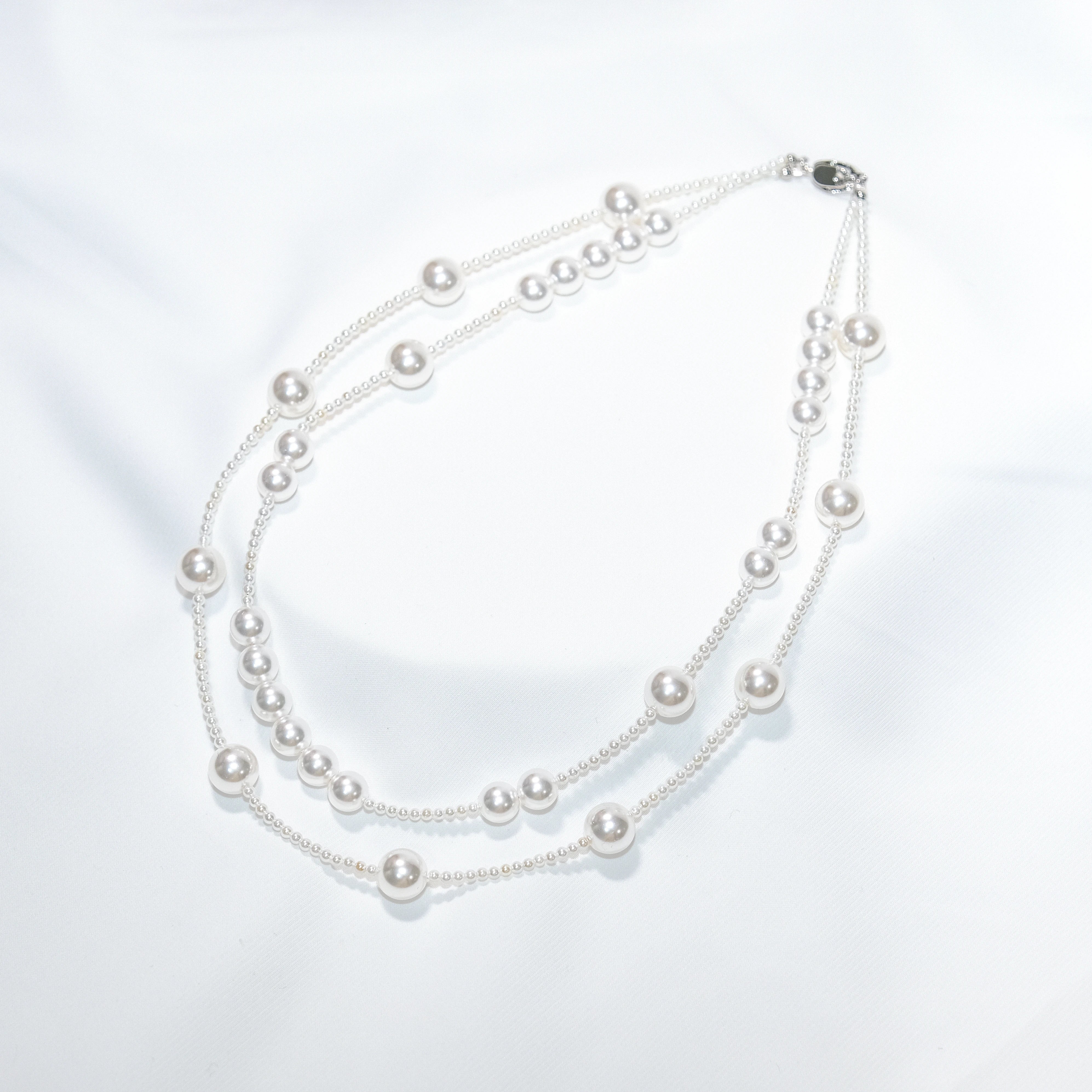 Layered Shell Pearl Necklace, Double Strand Pearl Chain (2mm 8mm 10mm)
