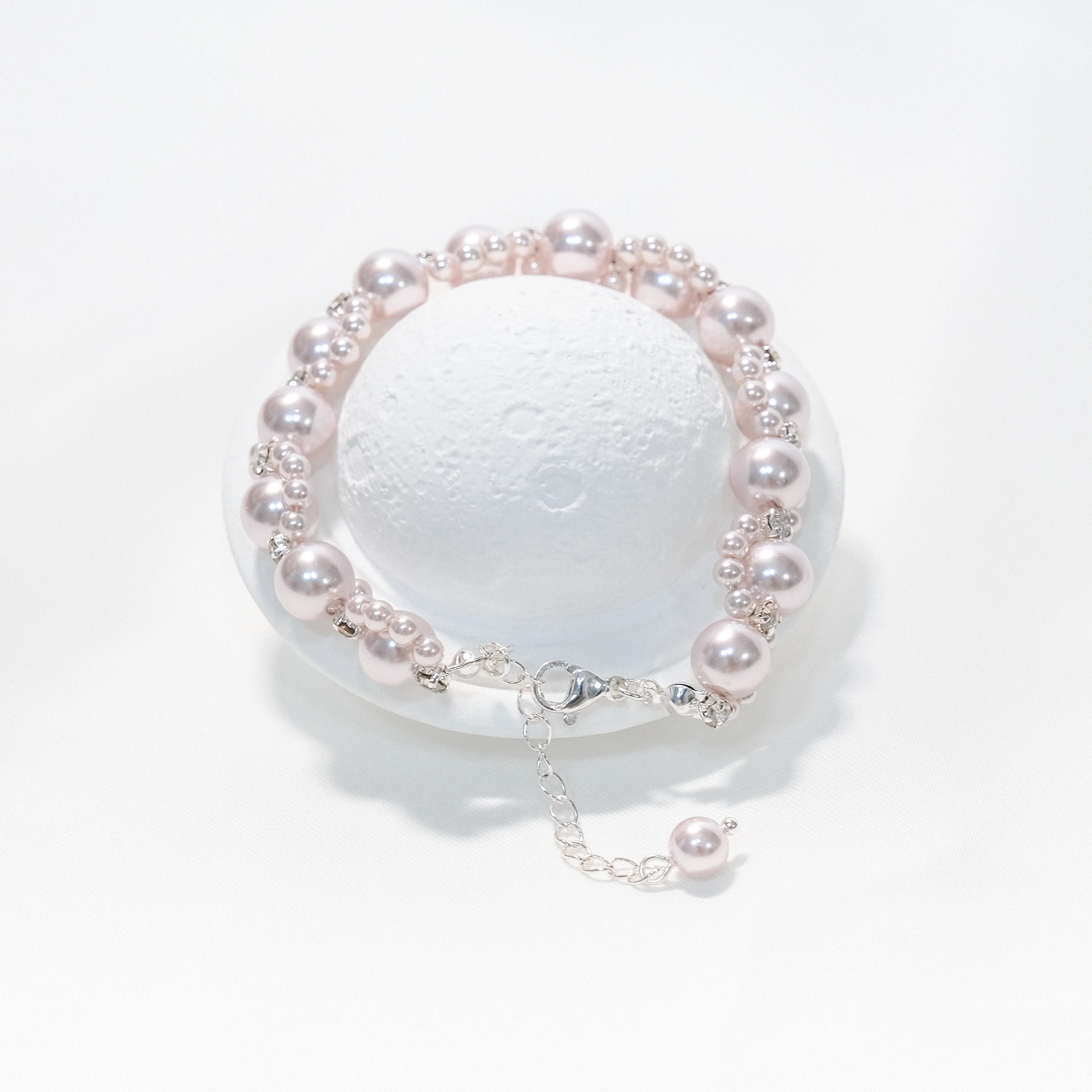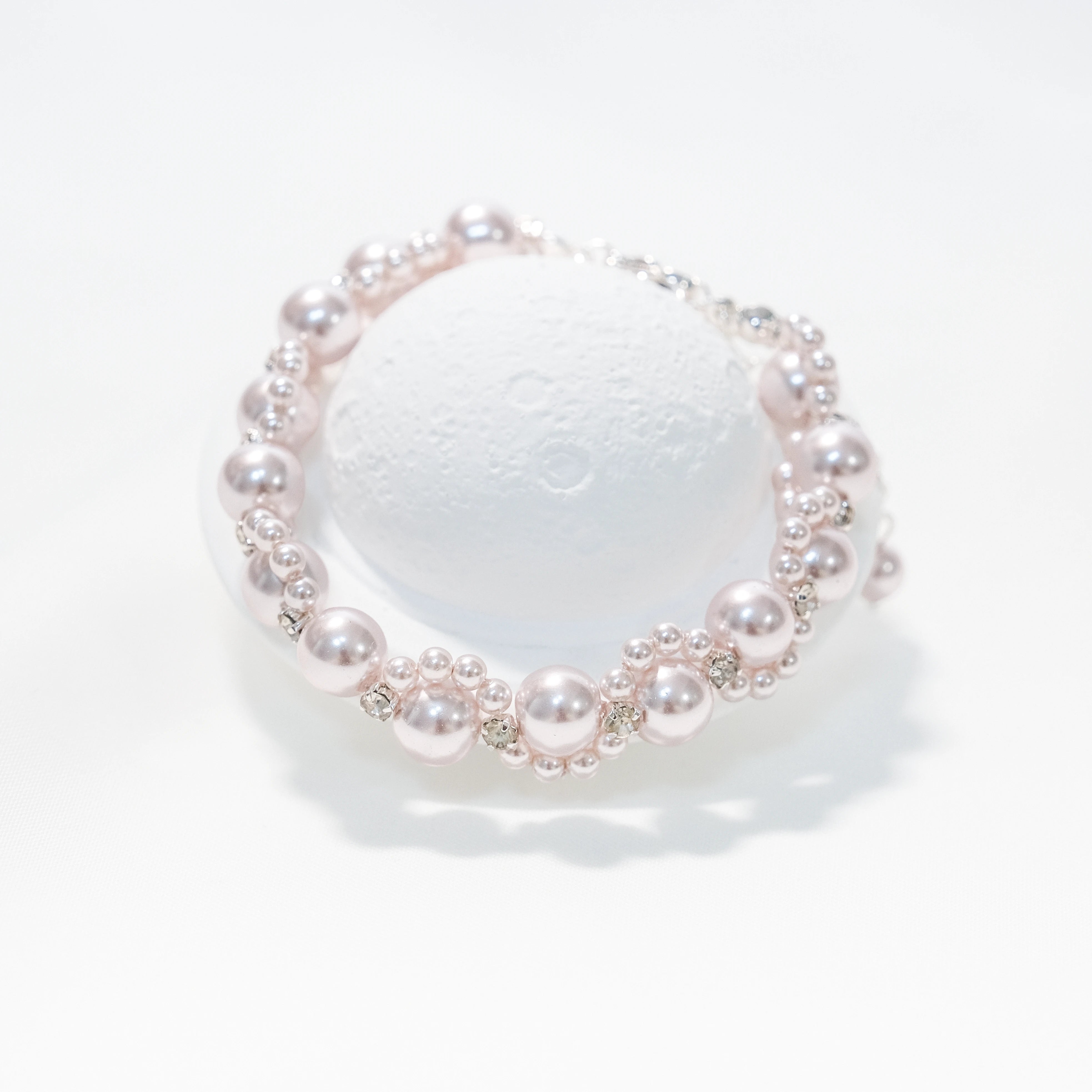 Vintage-Inspired Pearl Crystal Bracelet in Soft Mauve Pink | Elegant Wrap Jewelry