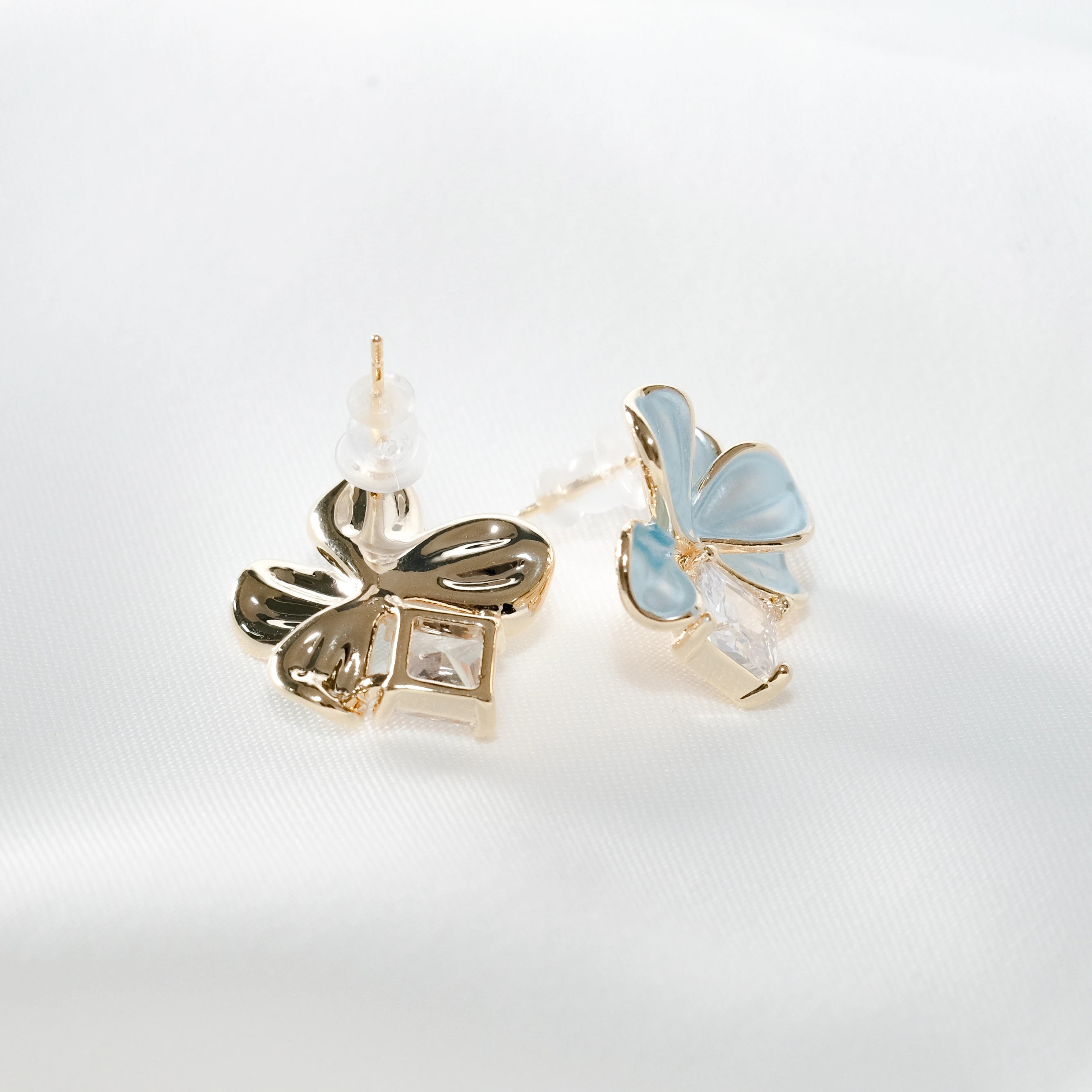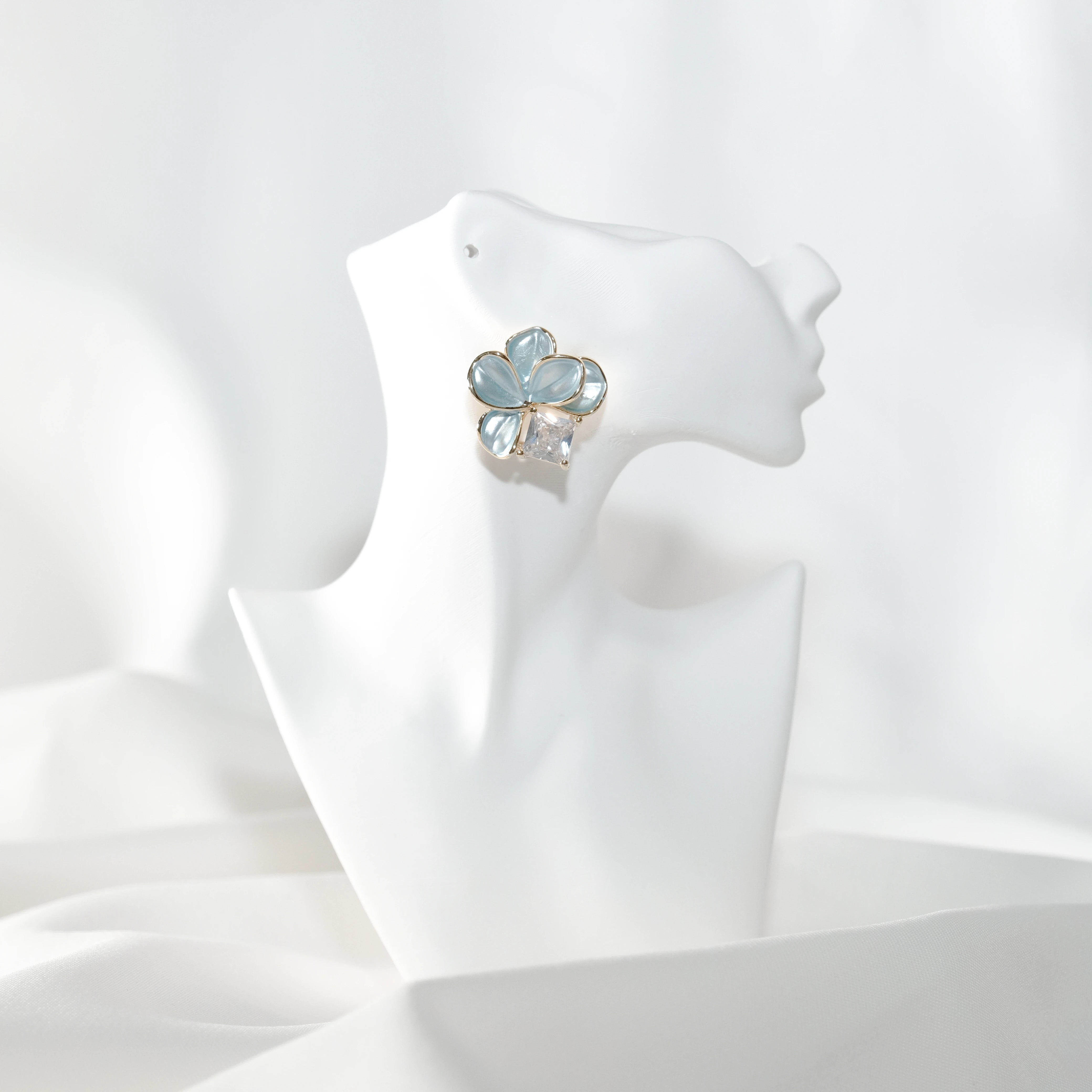 Blue Flower Earrings with S925 Silver Cubic Zirconia