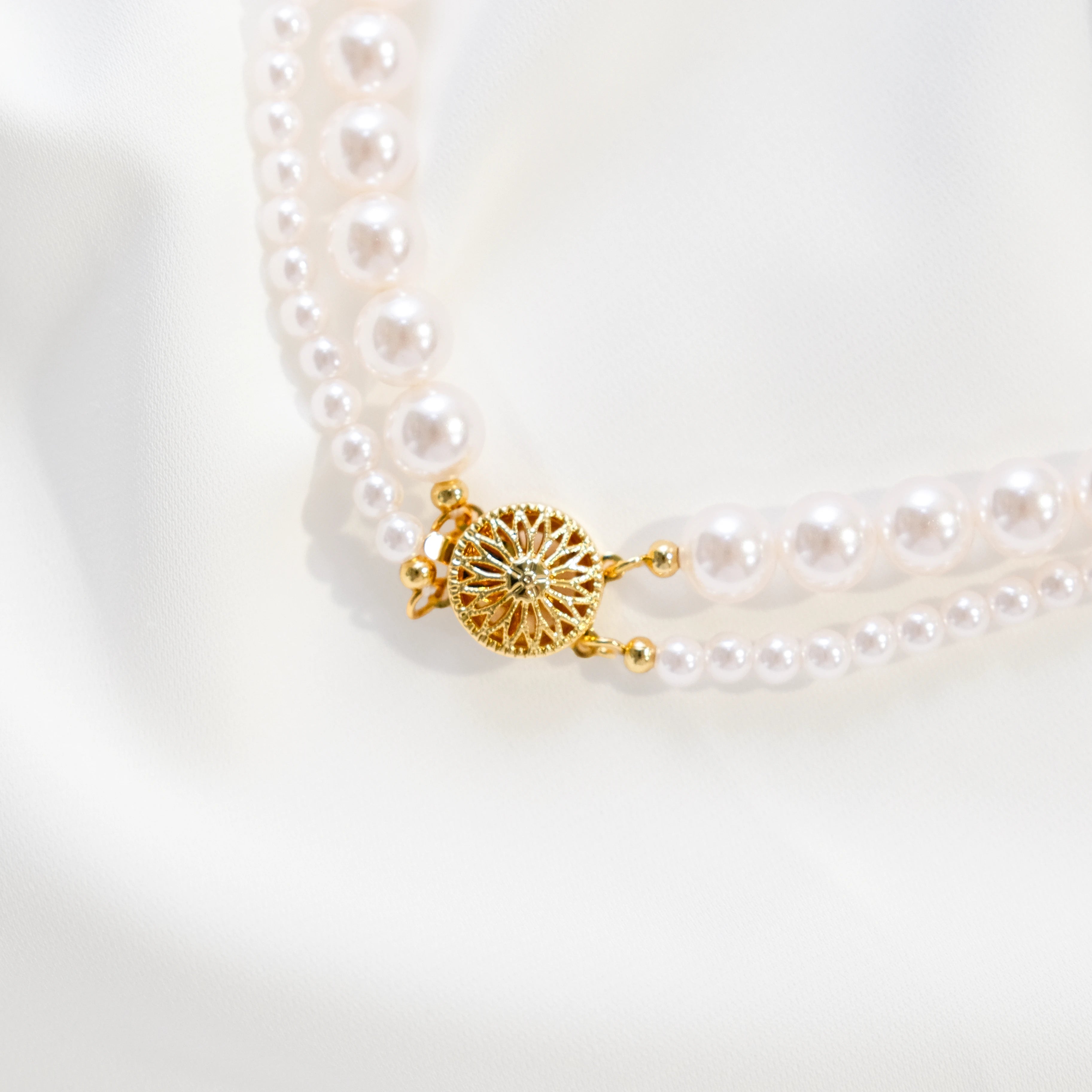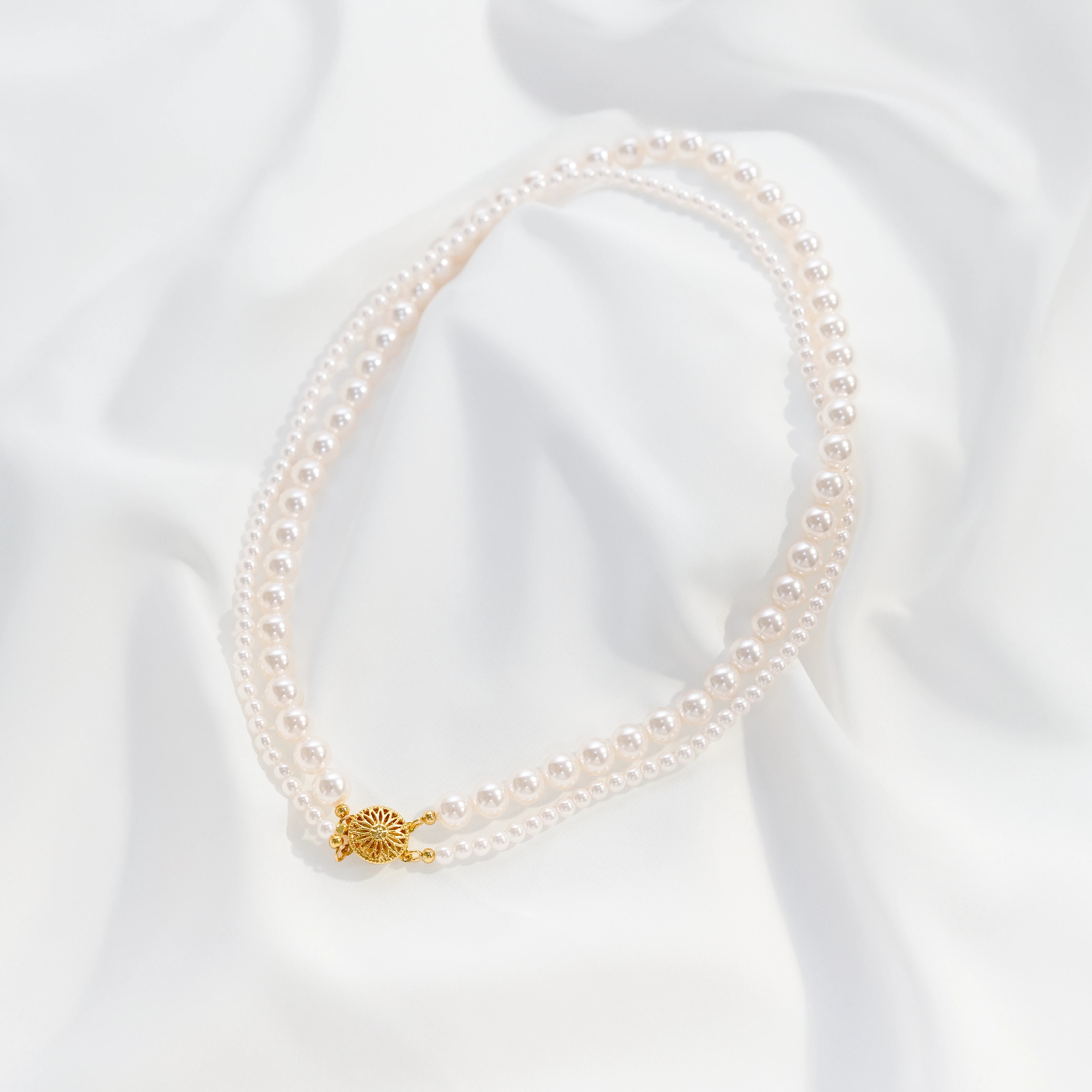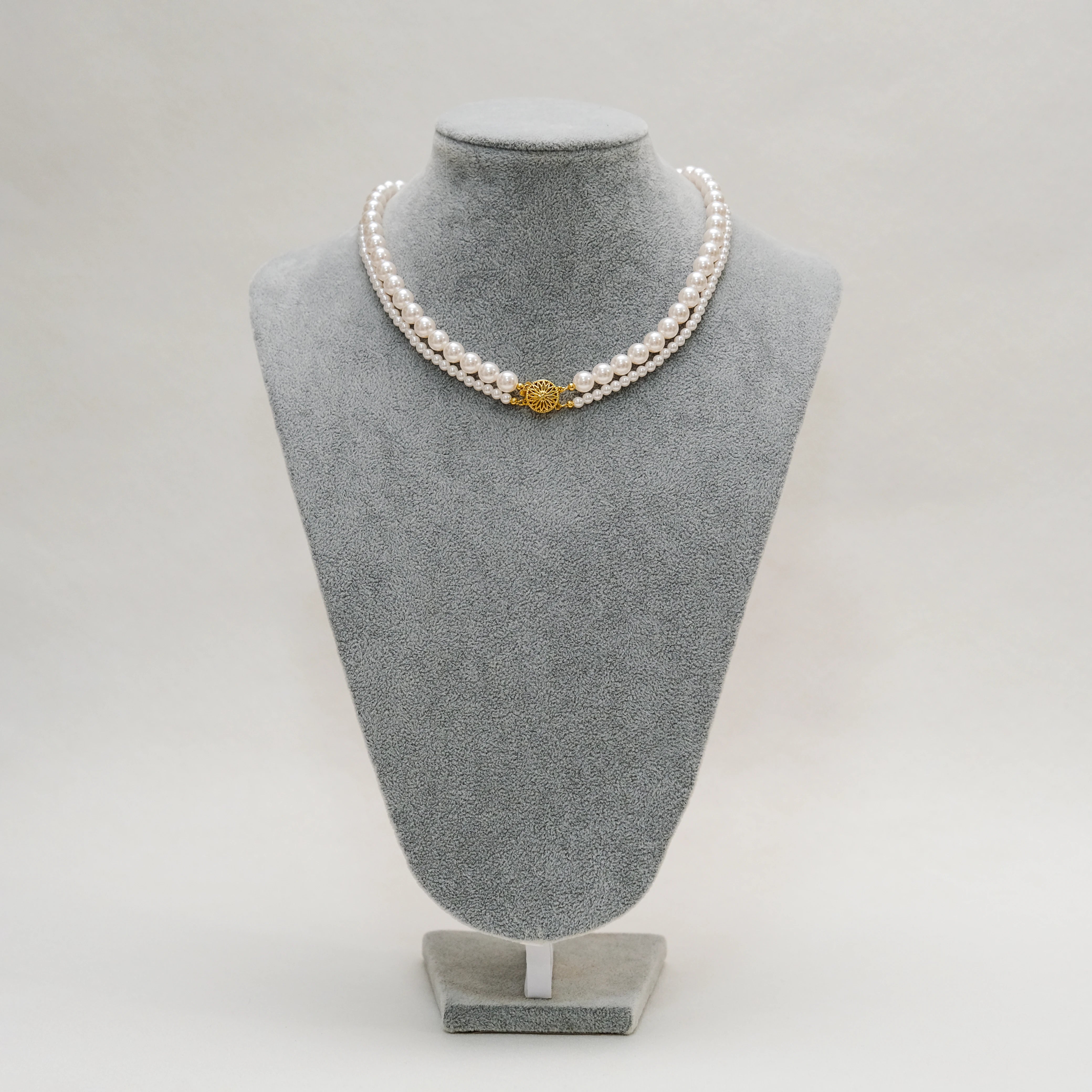 Double Strand Pearl Necklace with Vintage Gold Clasp