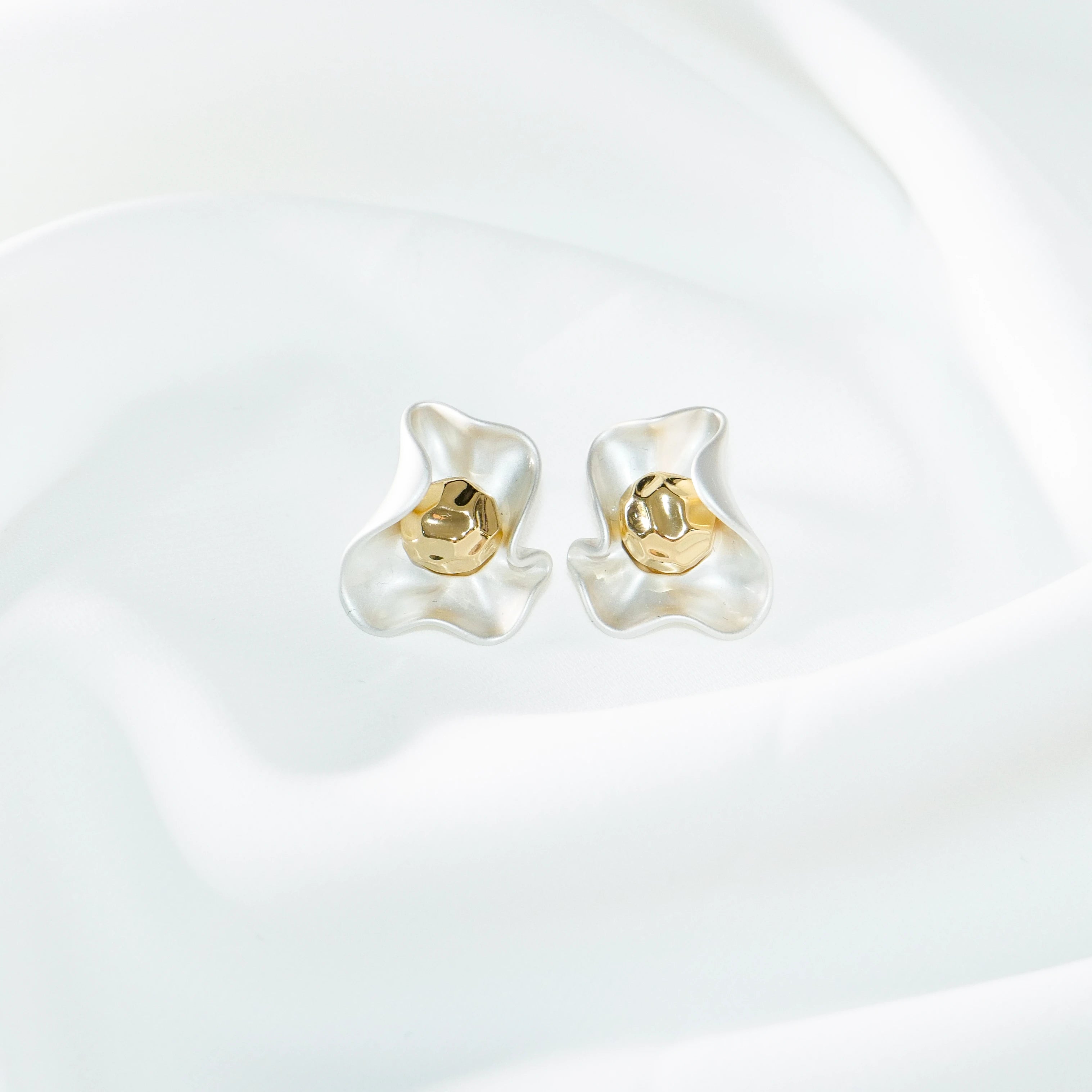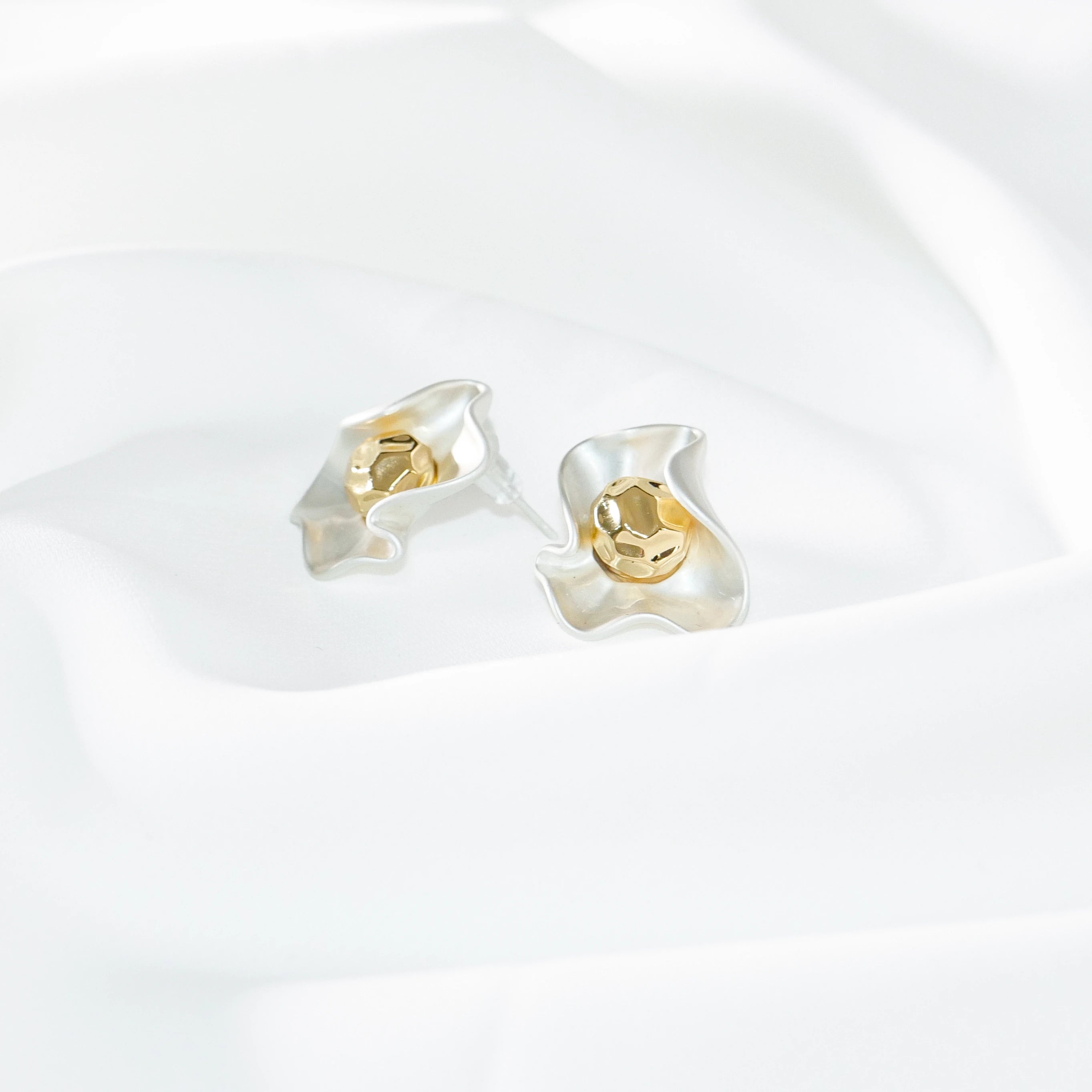Matte Silver & Gold Petal Stud Earrings - S925 Sterling Silver