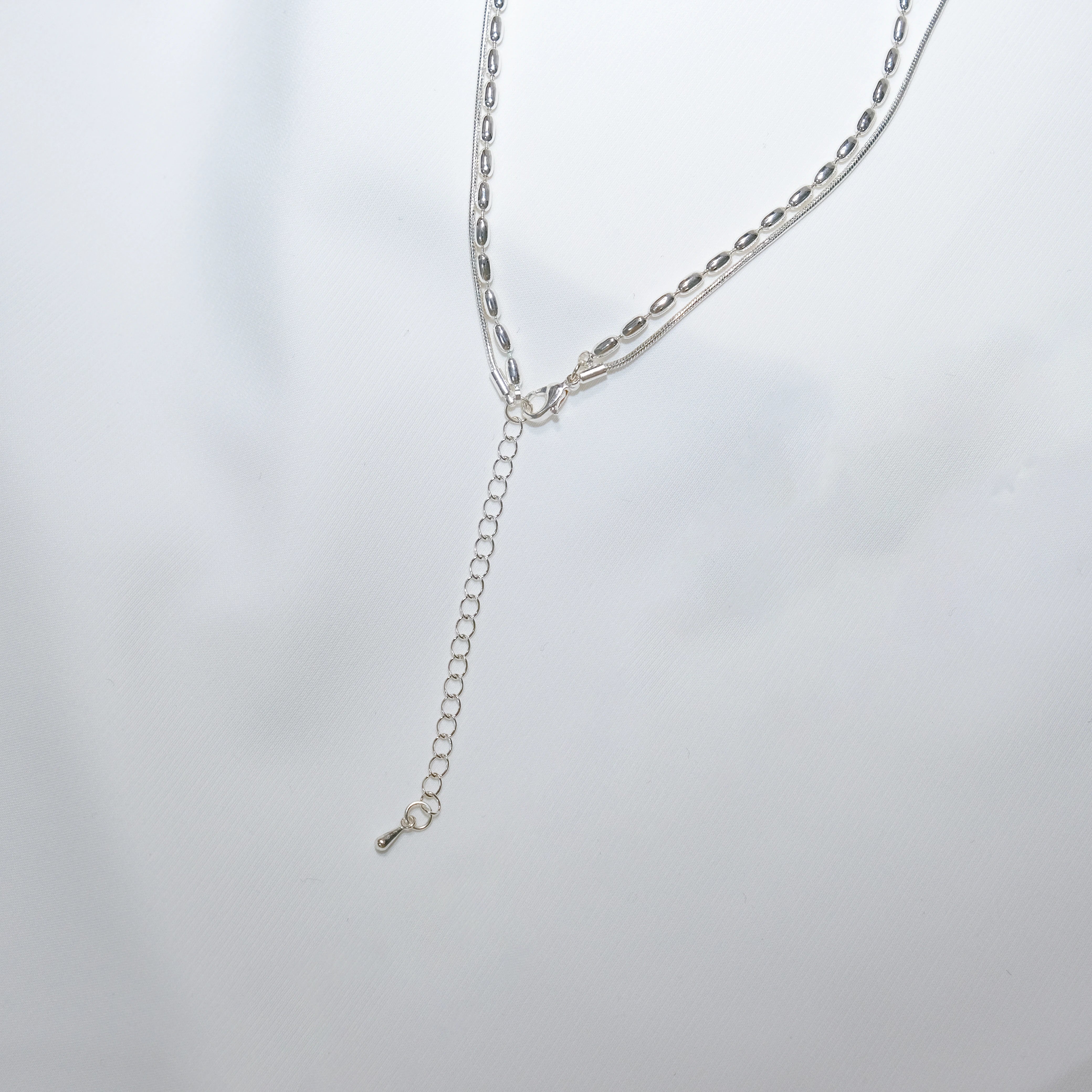 Minimalist Double Layer Silver Teardrop Necklace