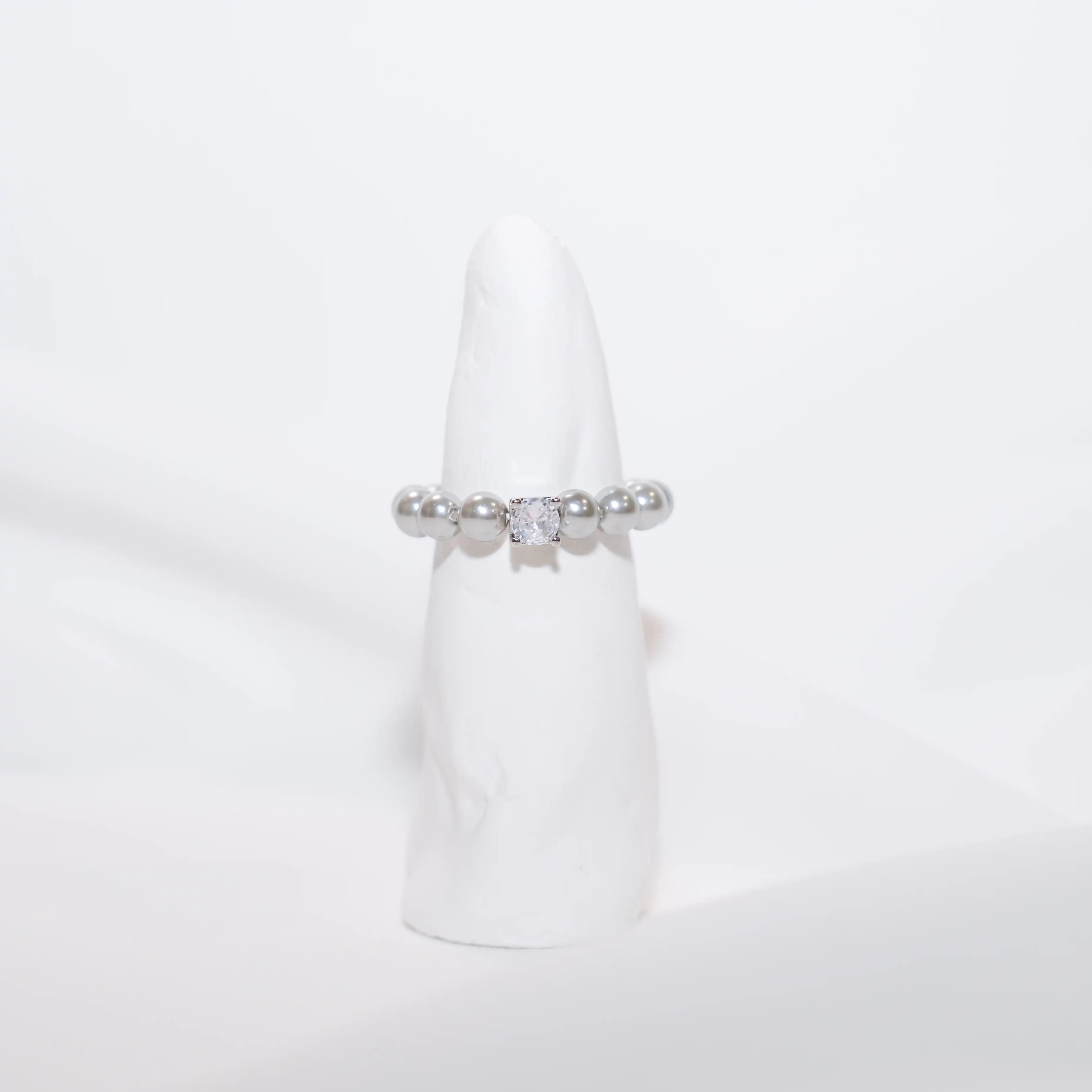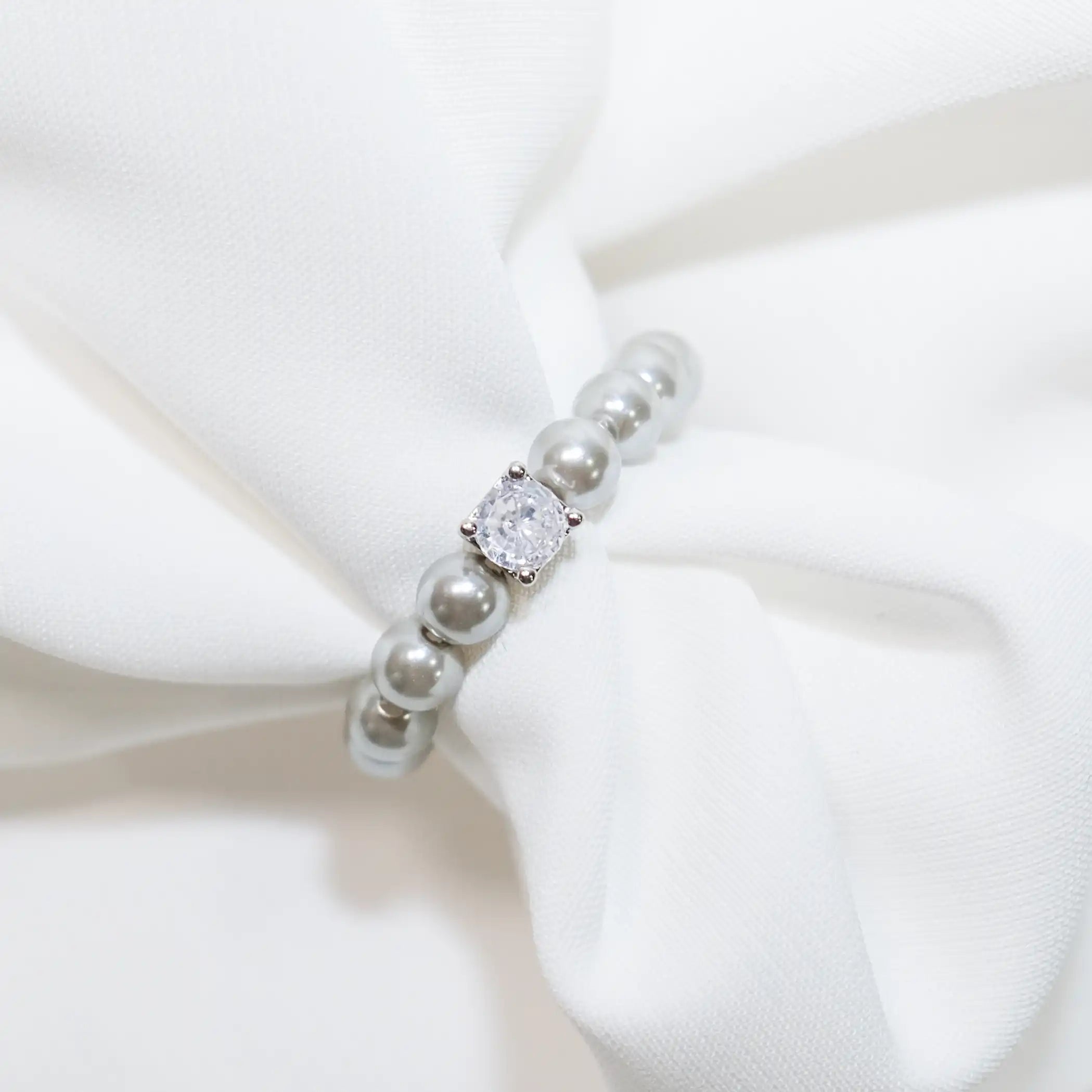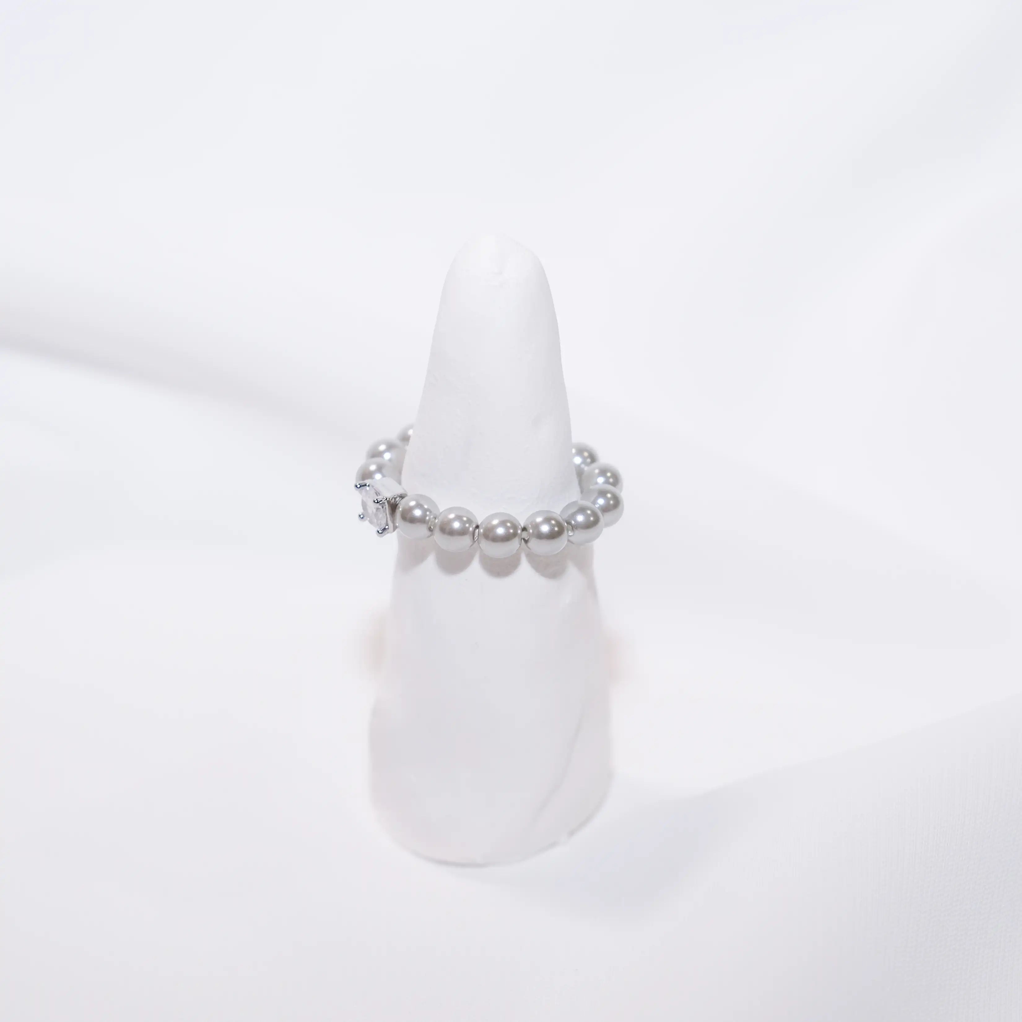 Freshwater Pearl with Cubic Zirconia Center Stretch Ring – White & Grey
