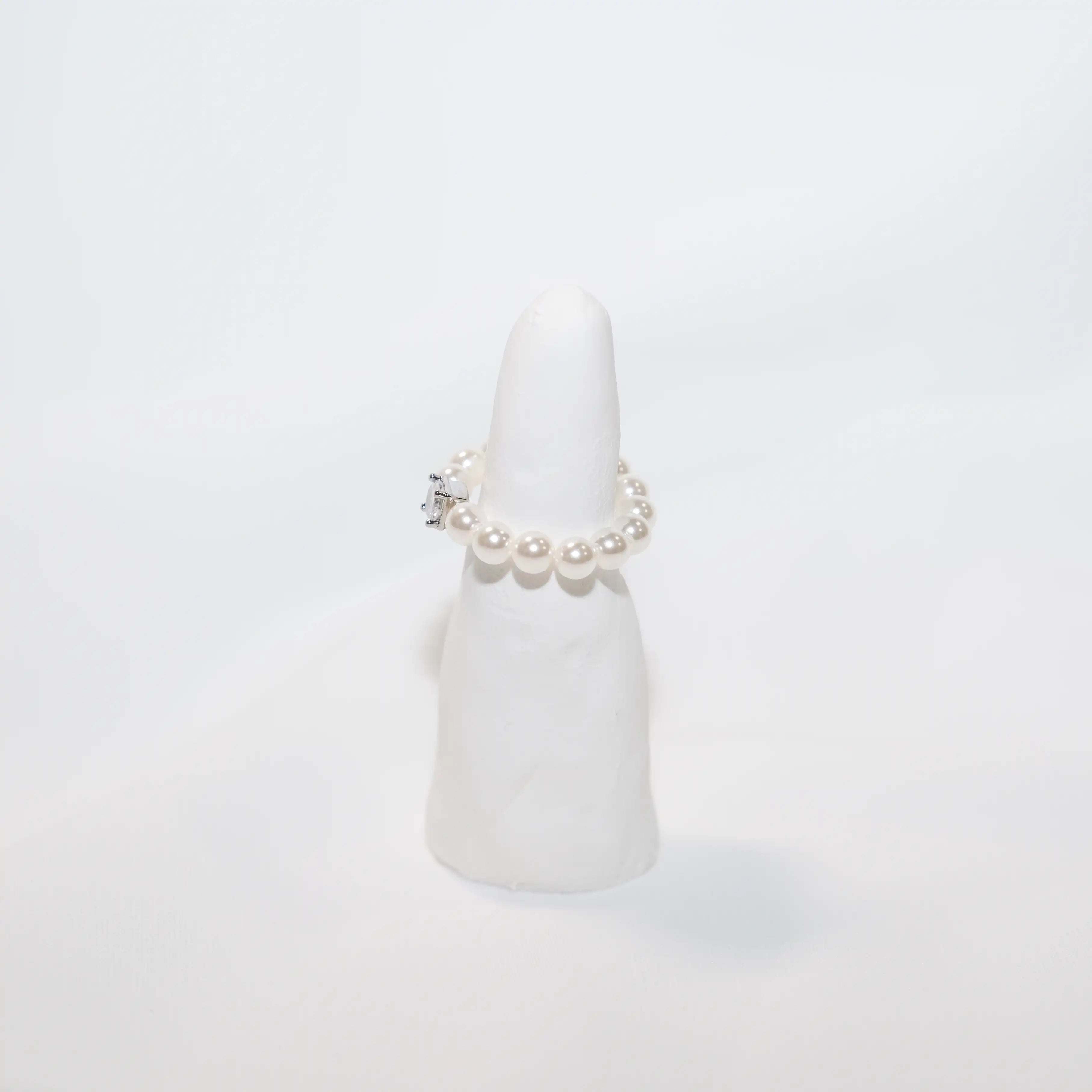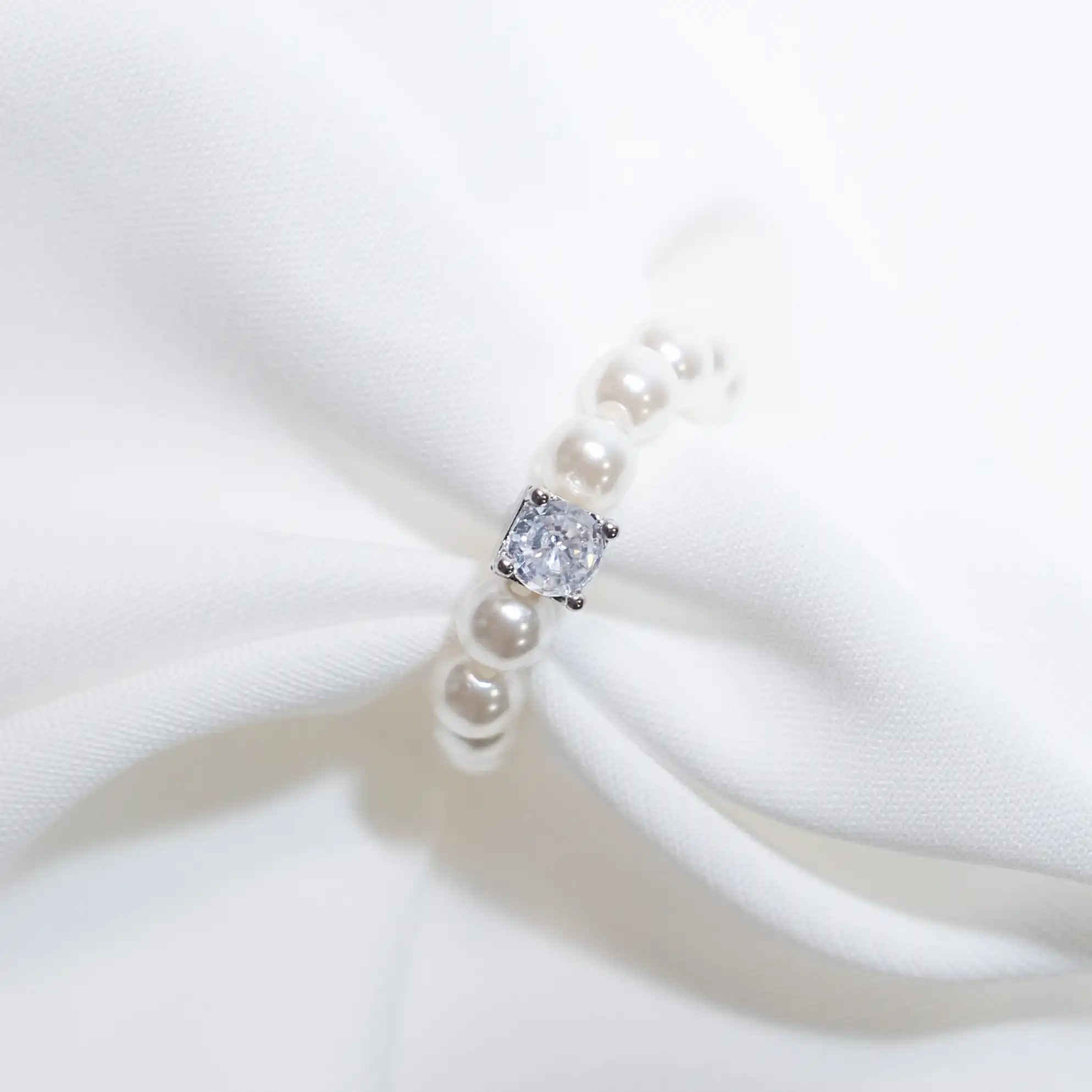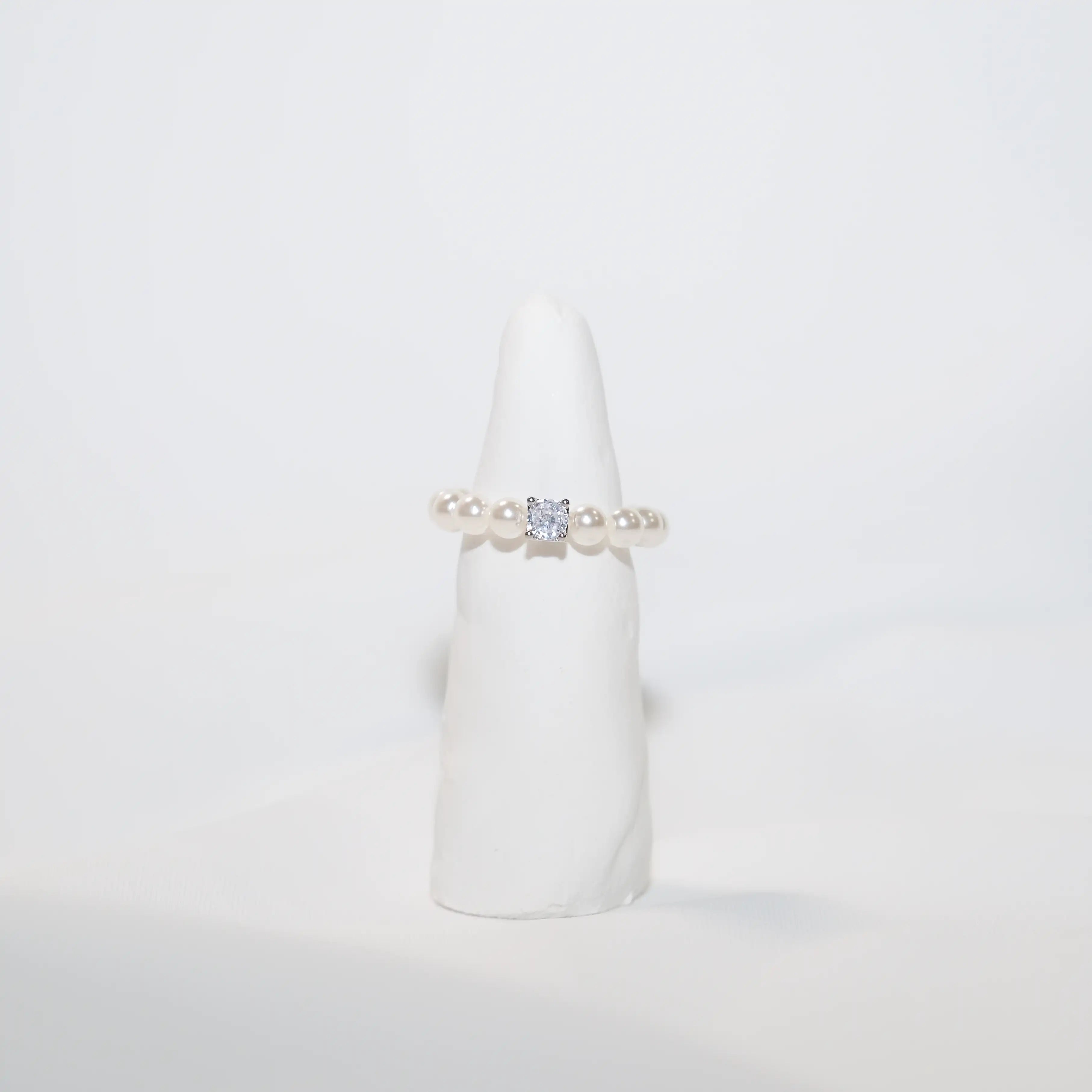 Freshwater Pearl with Cubic Zirconia Center Stretch Ring – White & Grey