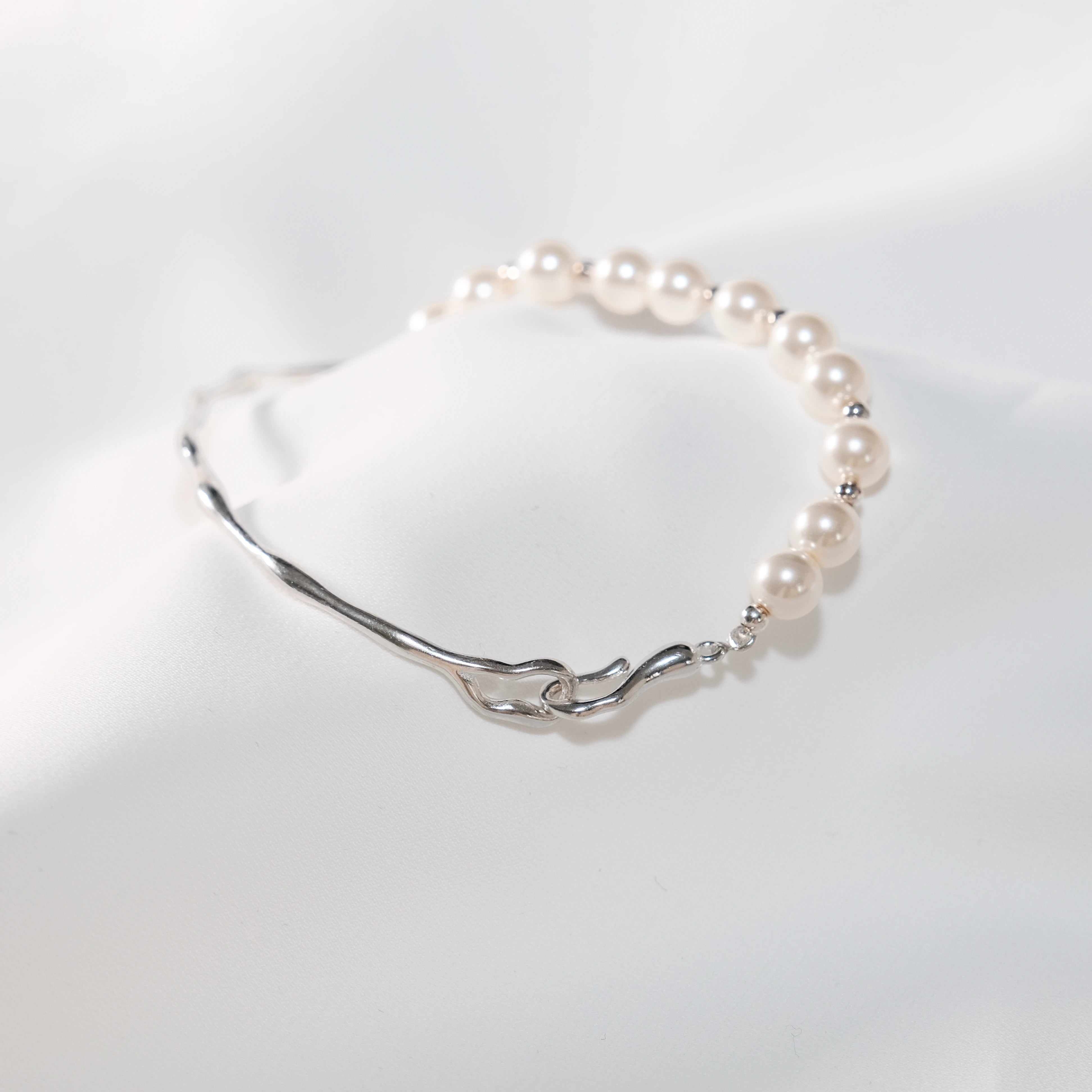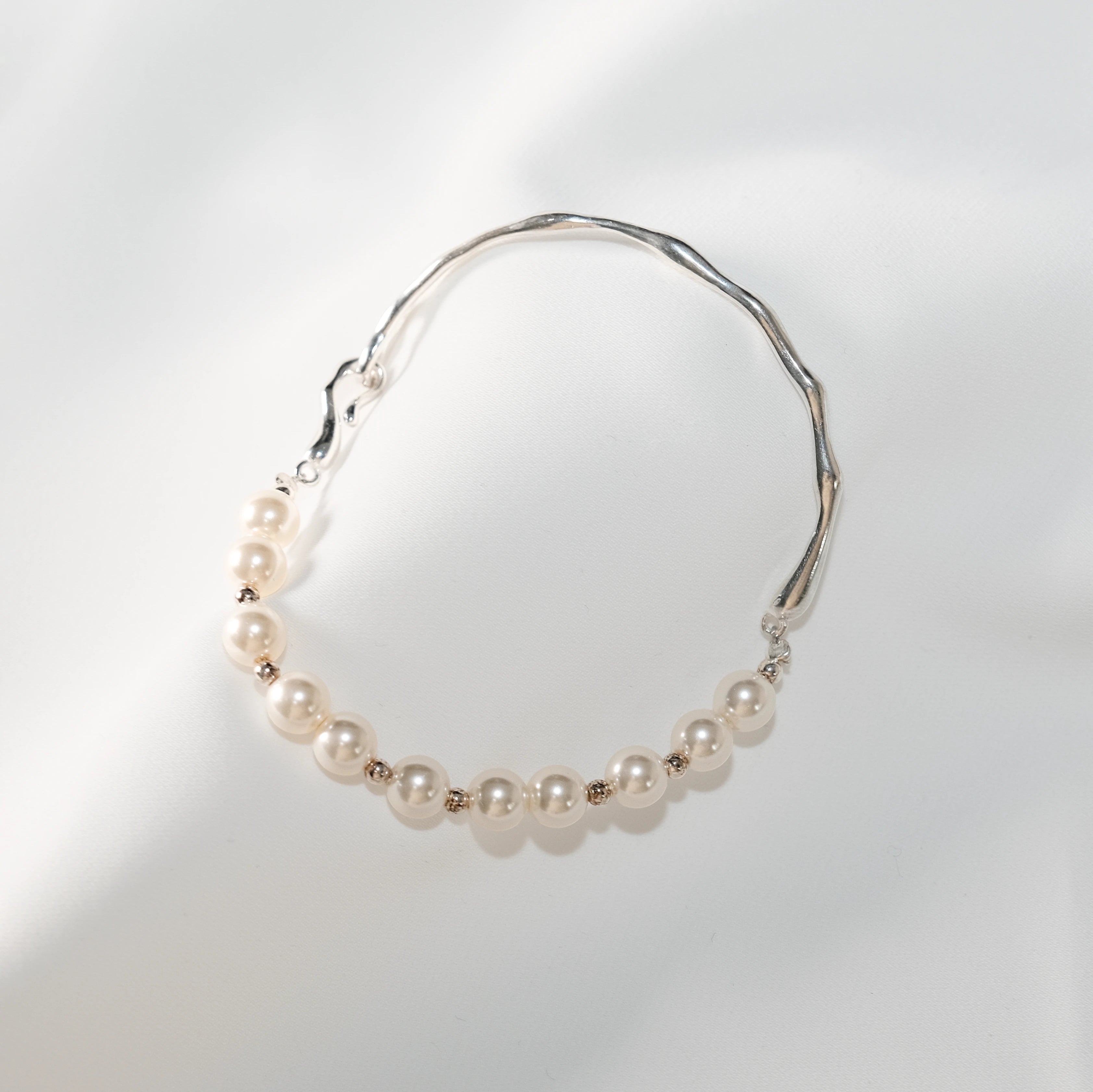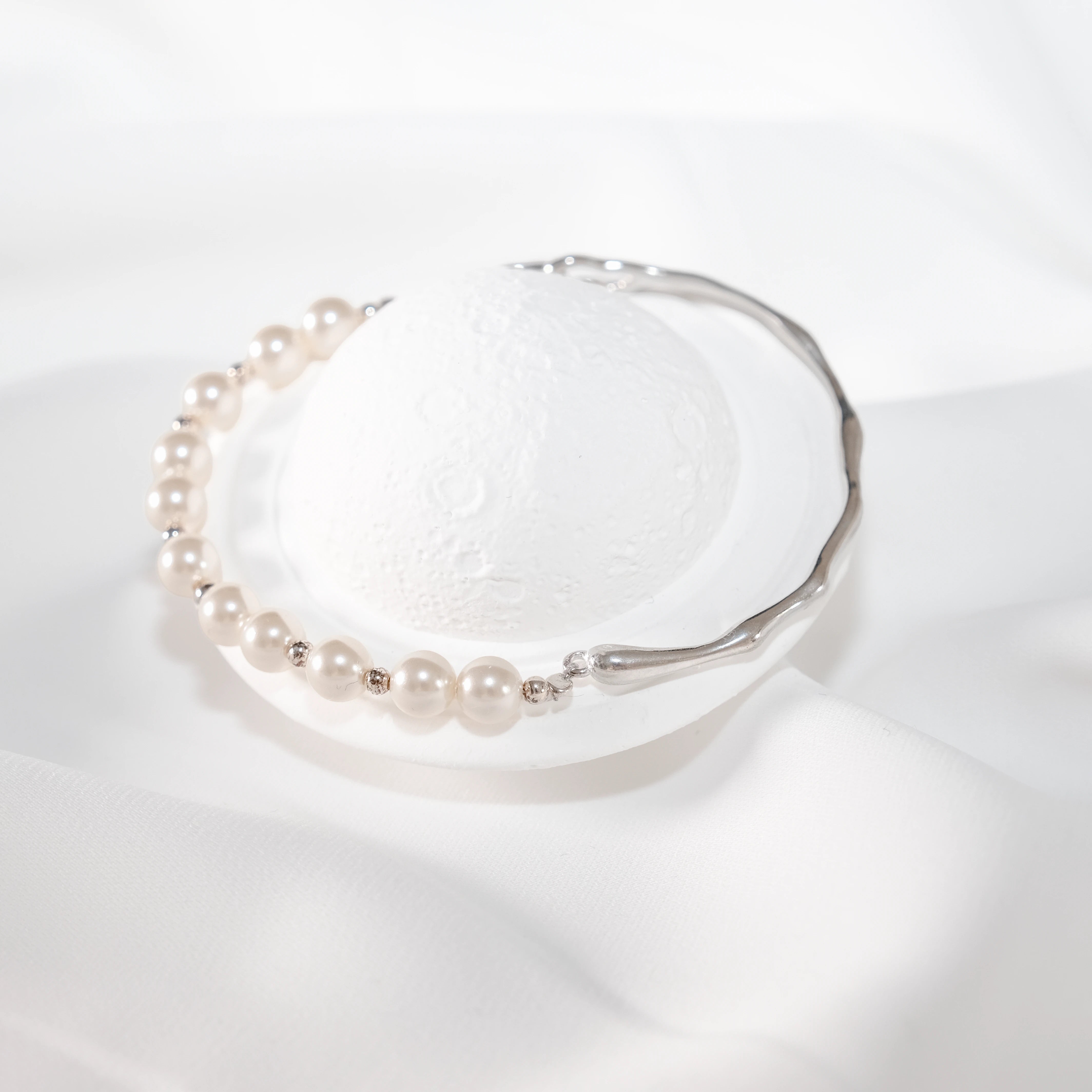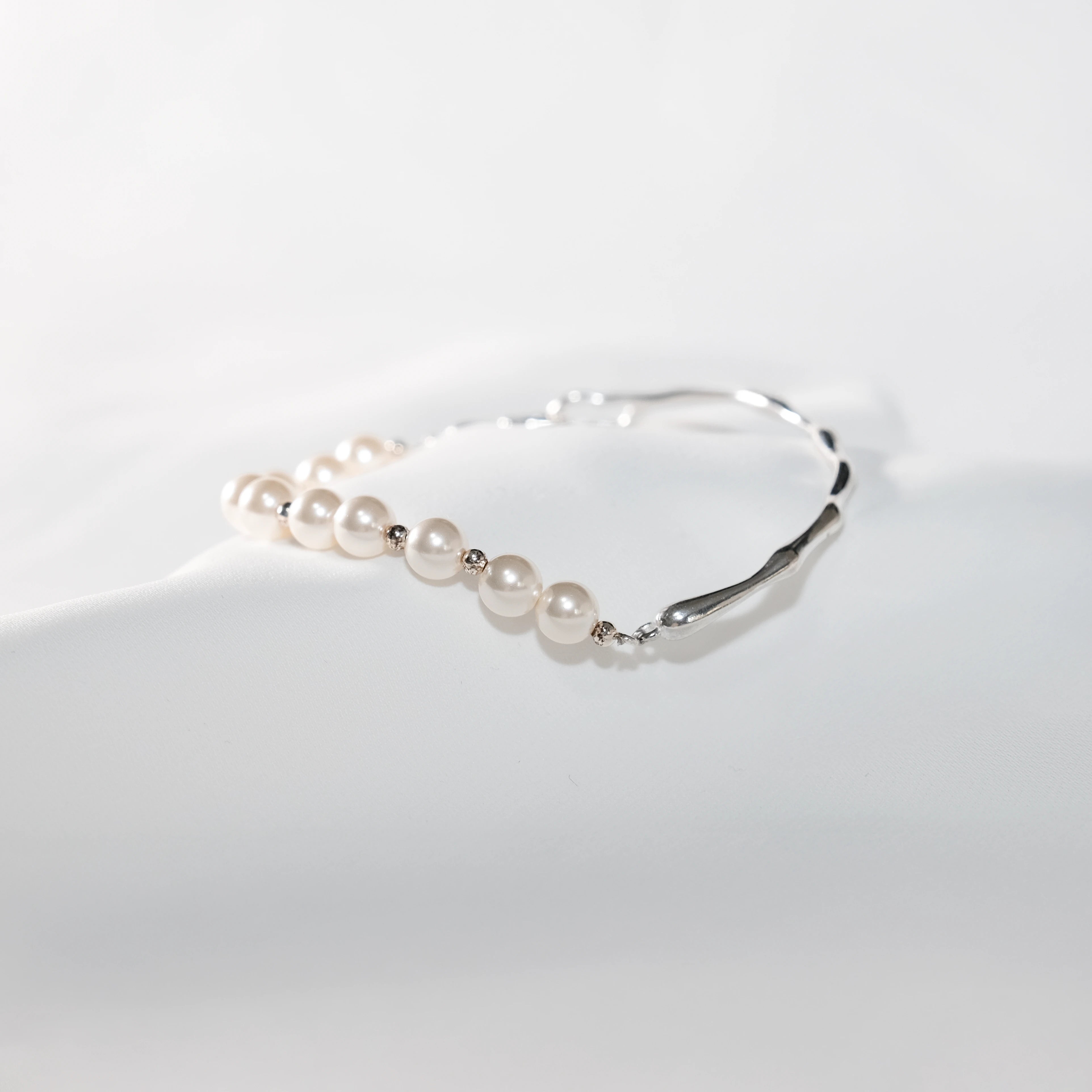 S925 Sterling Silver Pearl Cuff Bracelet for Women