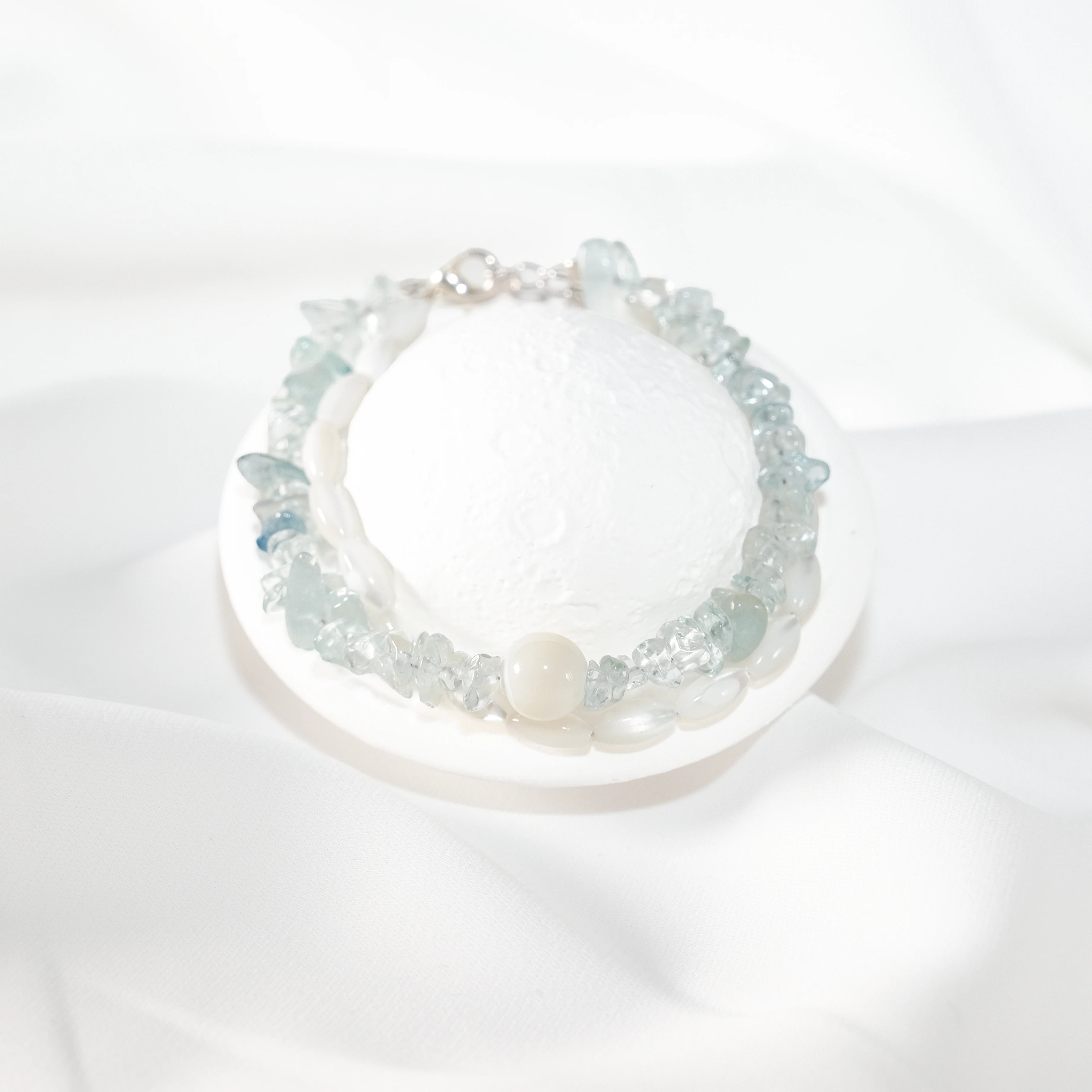 Double Layer Sea Blue Stone Beaded Bracelet – Natural Crystal & Pearl Stackable Jewelry